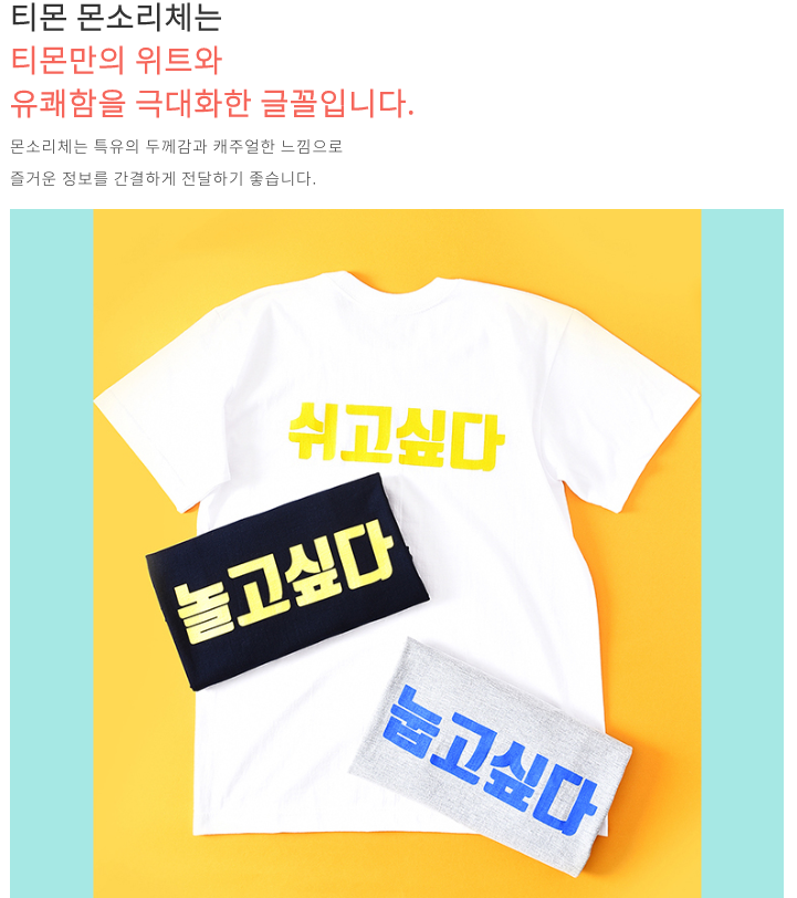 Tmon 몬소리체 라이선스 전문을 포함하기 어려울 경우, Tmon 몬소리체의 출처 표기를 권장합니다.