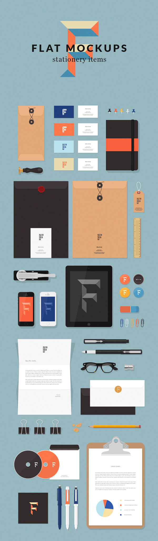 46. Free Flat Stationery MockUp Items