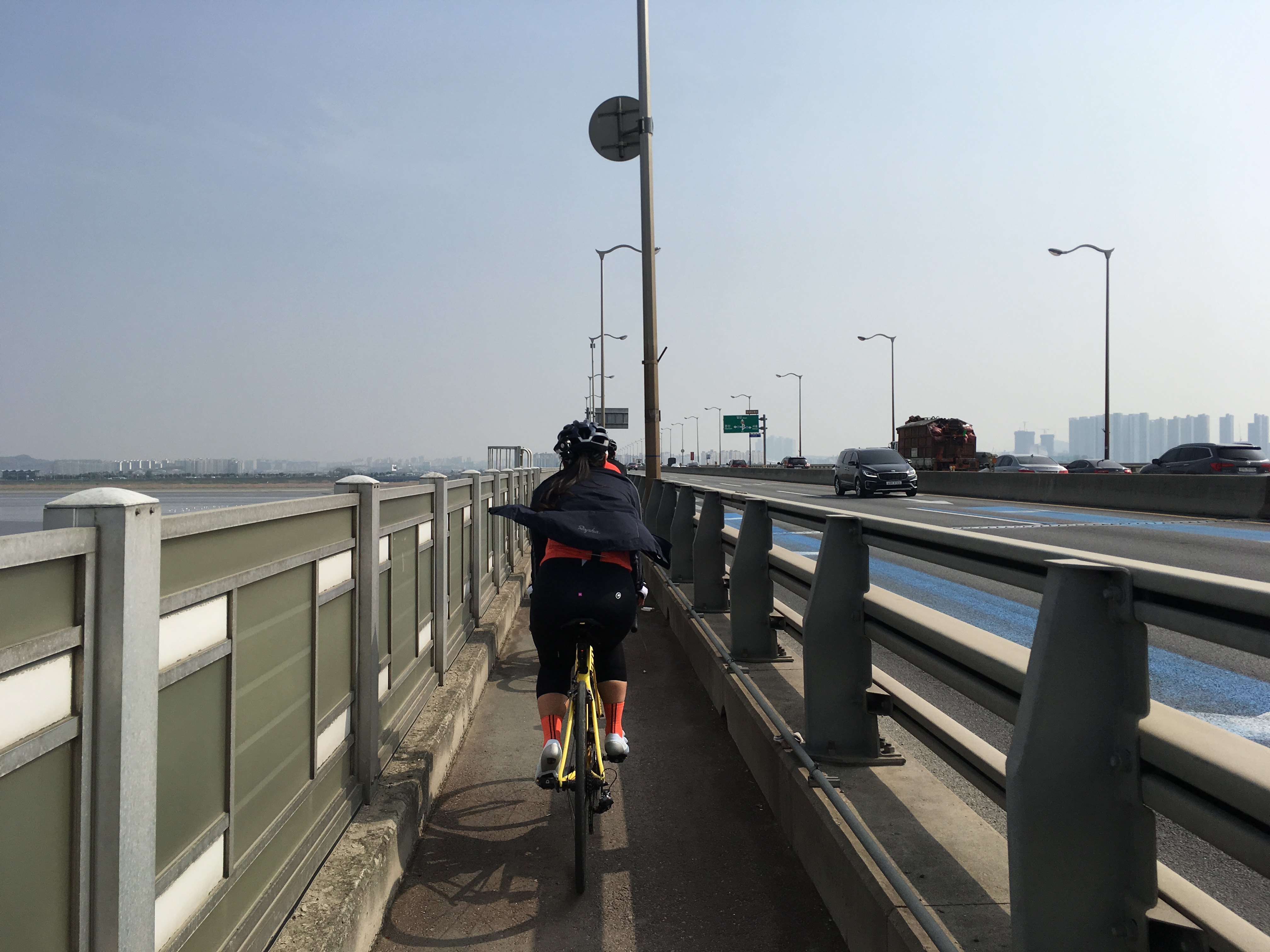 일산대교 건널때는 좌측의 홀과 우측의 튀어나온 난간이 꽤나 신경쓰였어요..
