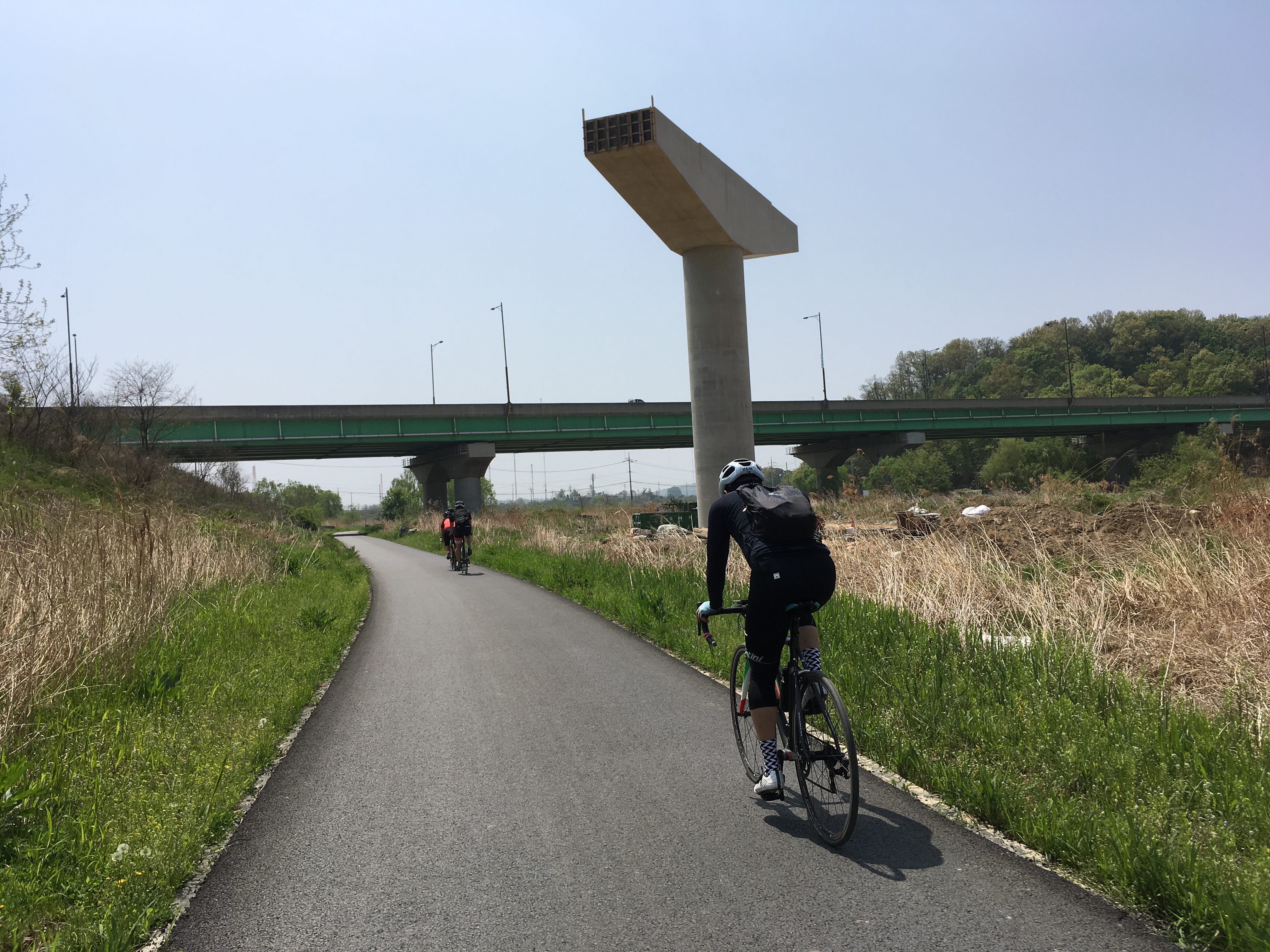 공릉천 자전거길이 끝나고 공릉천을 건너야 하는데 공사중인 다리는