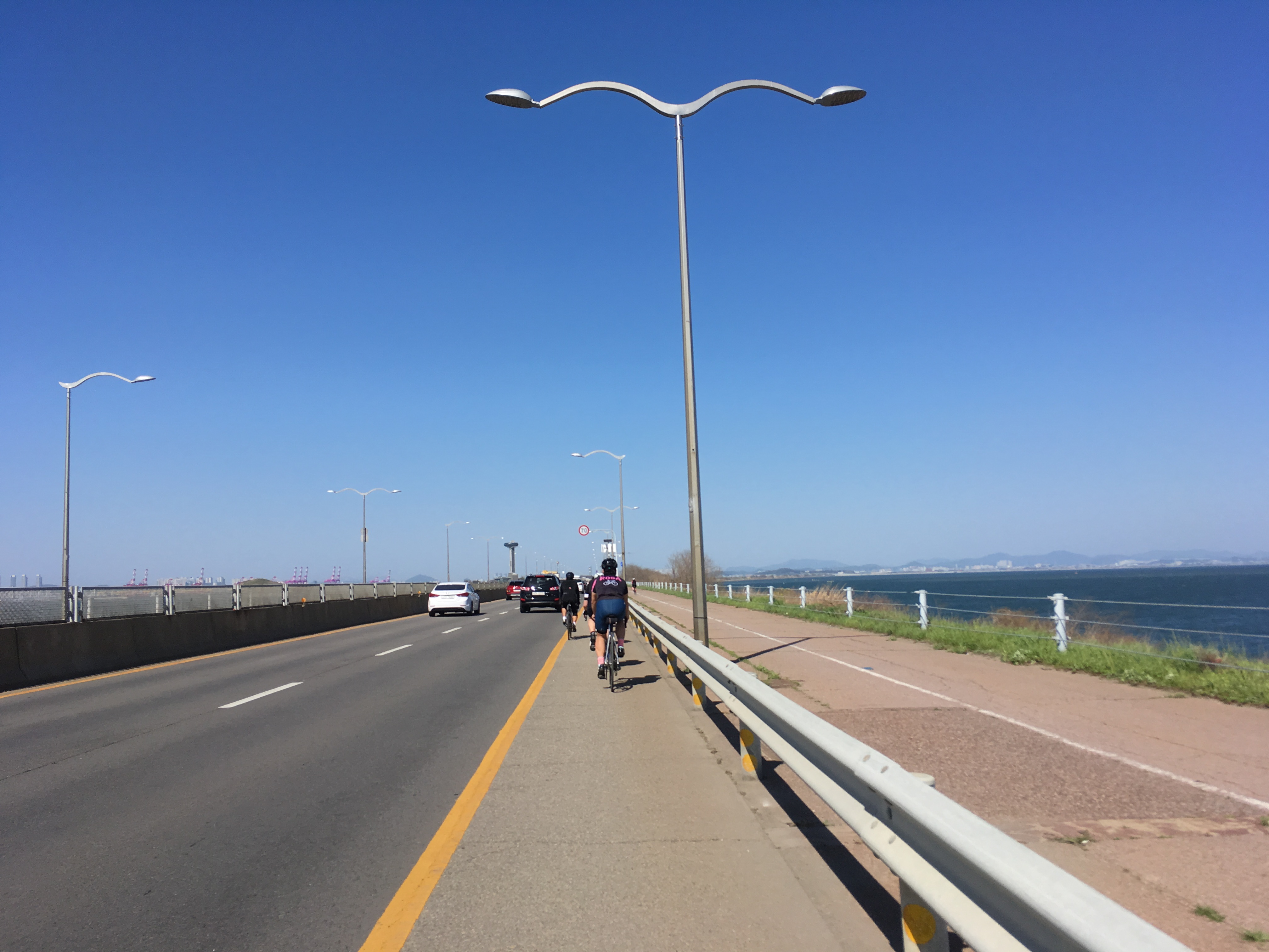시화방조제 오이도 방향으로 등바람이라 혼자서 달리는데도 항속 42을 찍더라구요