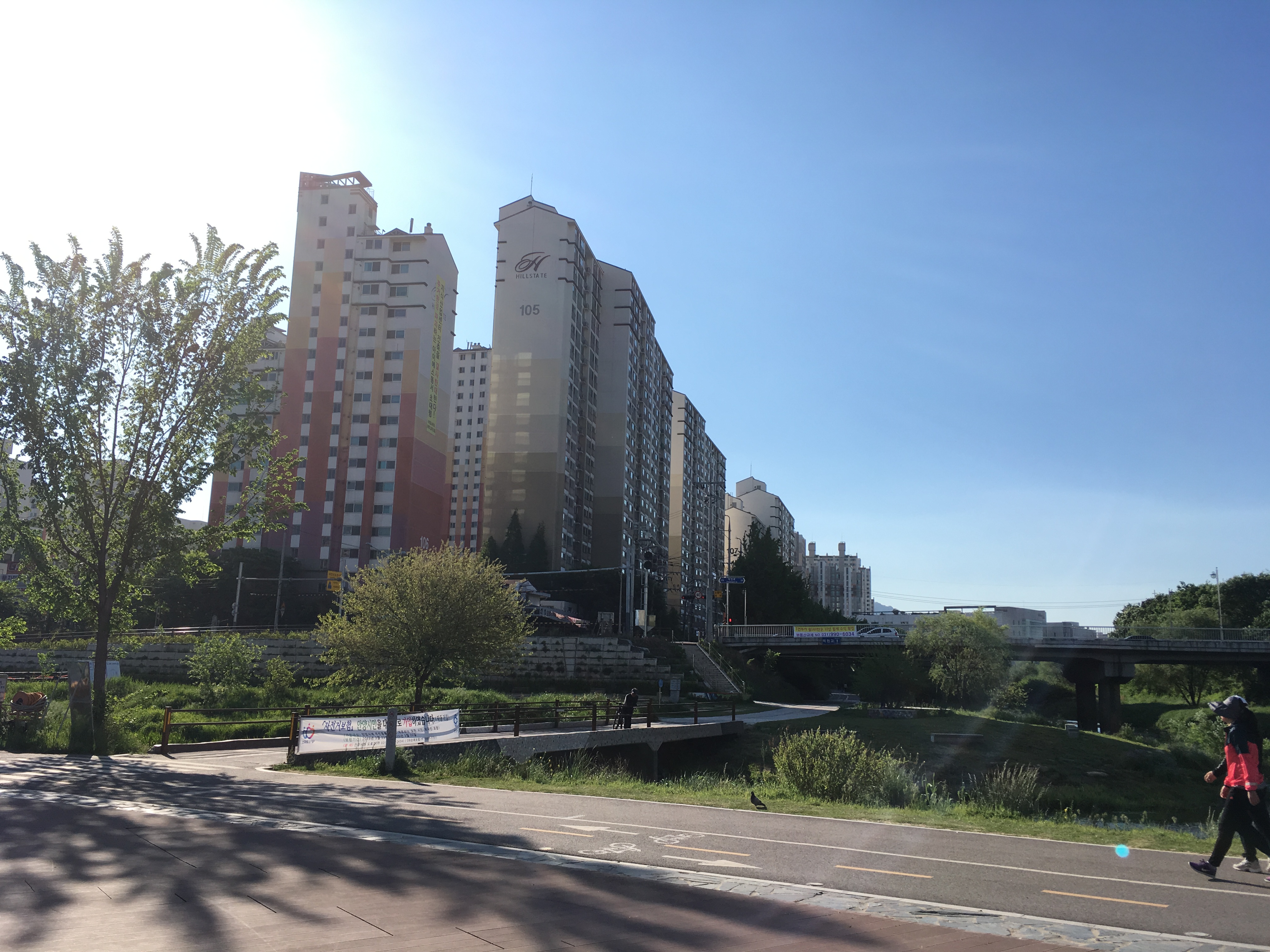레미콘 차량이랑 공사차량이 많아서 조금 복잡했어요