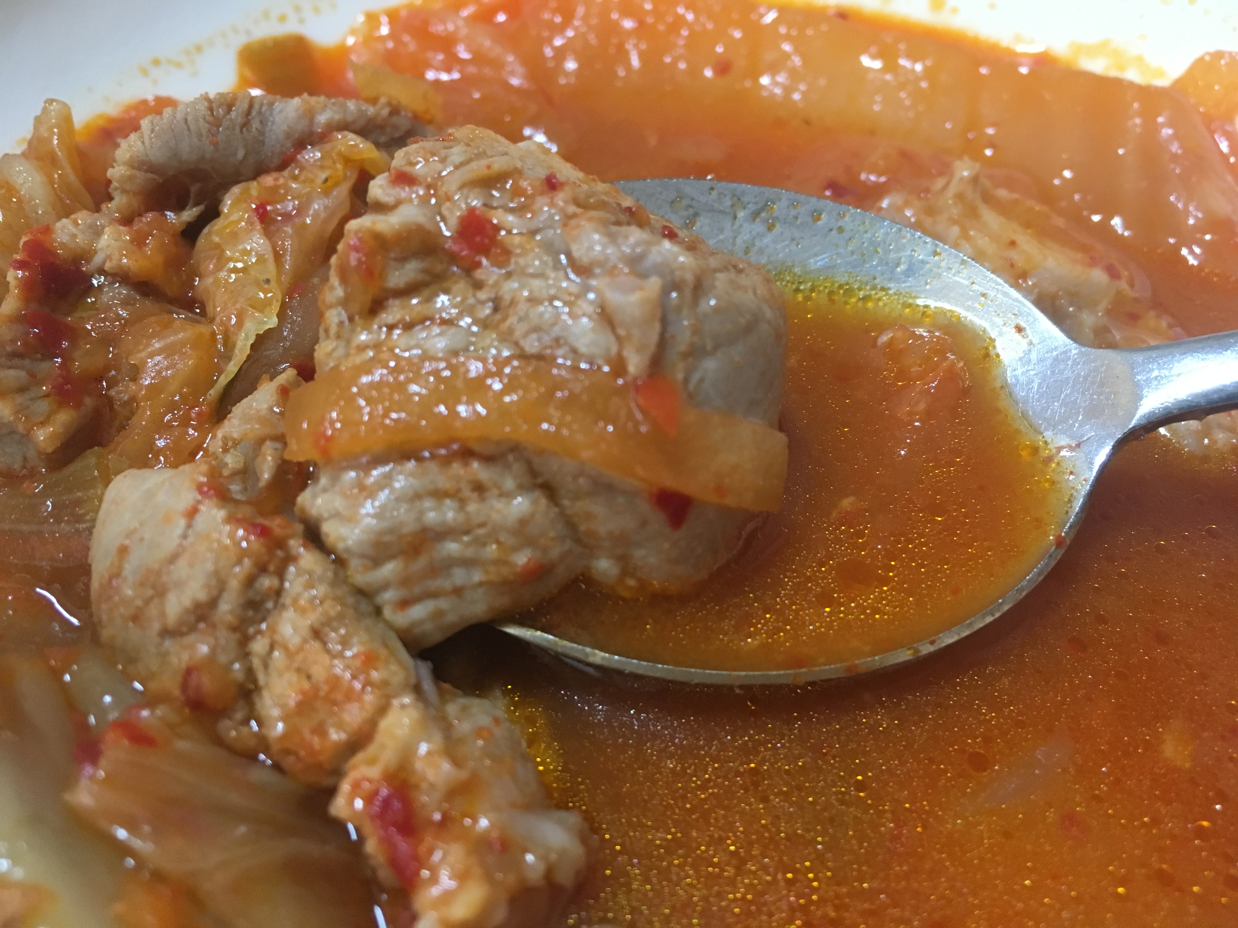 캬~~ 김치찌개에 들어있는 돼지고기가 두툼하게 맛나보이네요 +_+