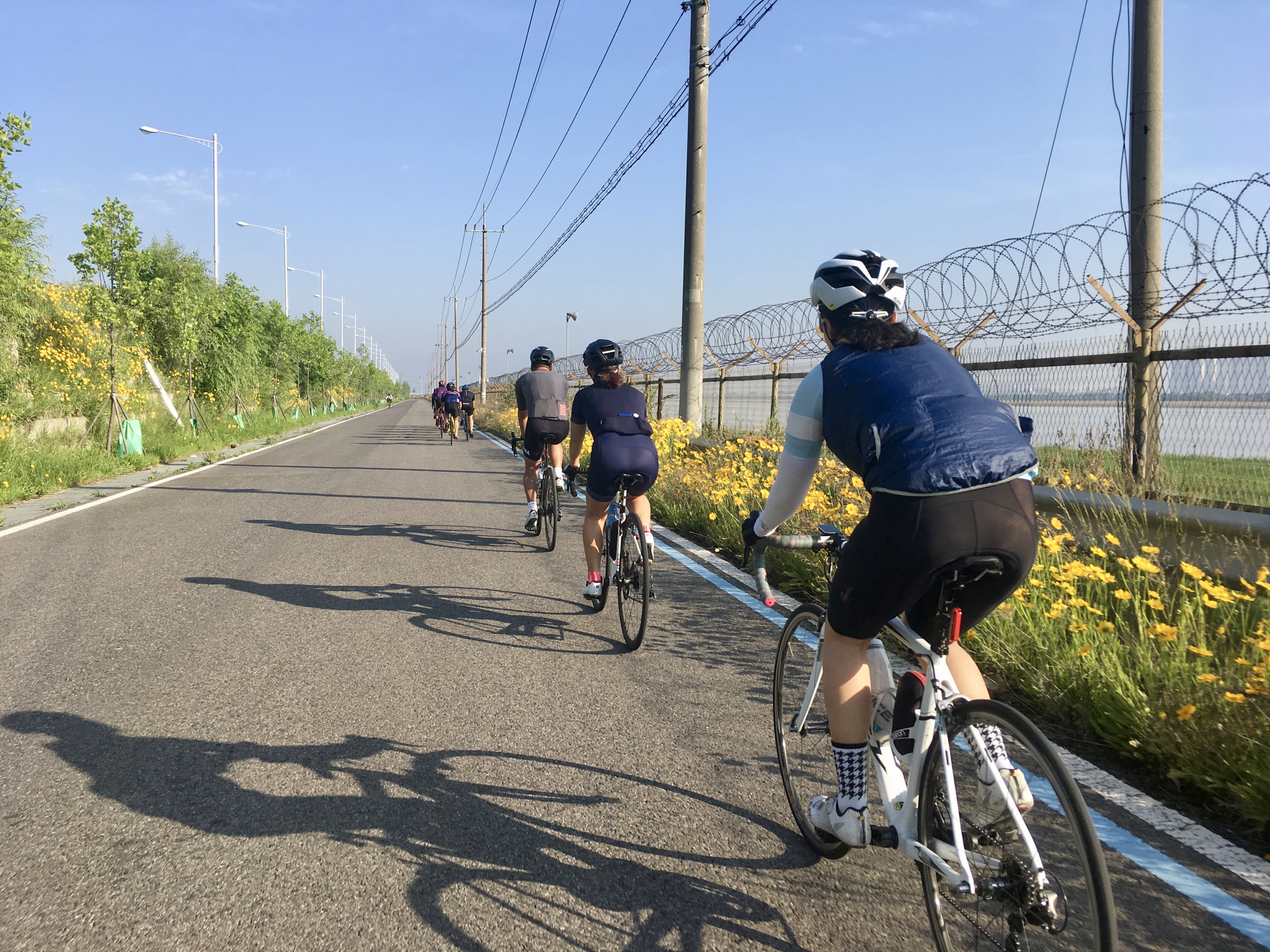 안합에서 반지(반미니)에서 출발한 사람들이 다 모여서 아라갑문 방향으로 주행합니다.