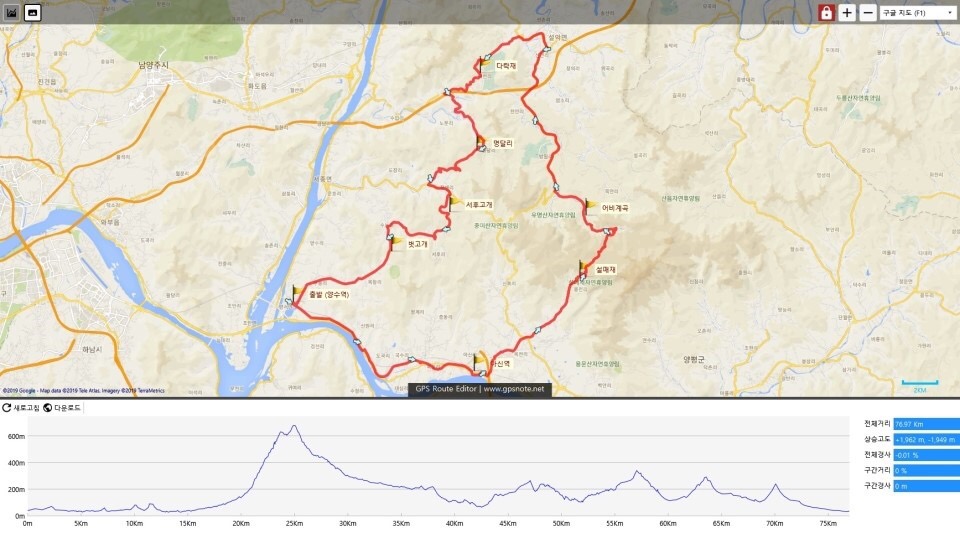 서후고개(R) - 벗고개(R) - 양수역 (76km 획고1200)