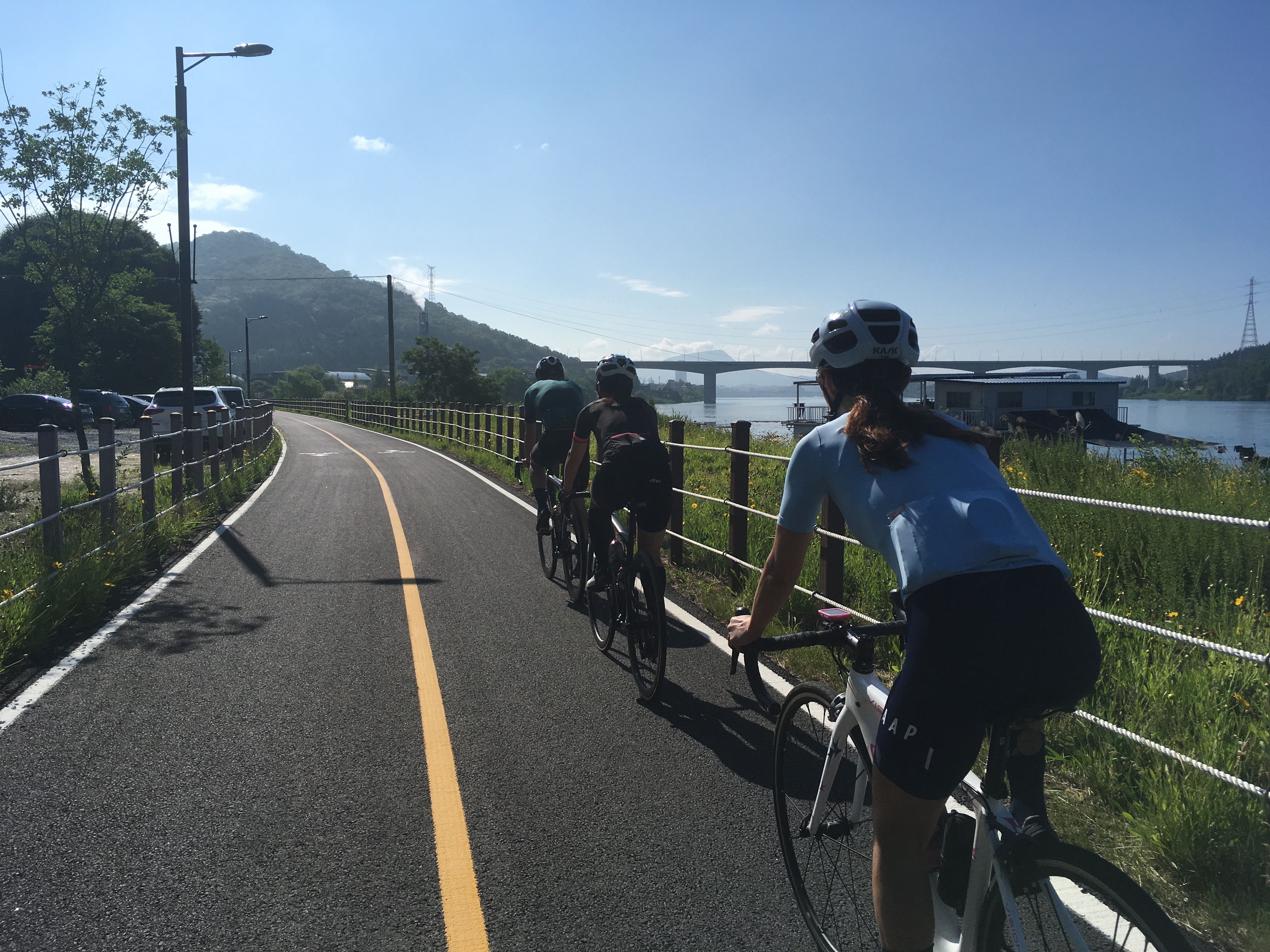 이른 아침 자전거길에 사람도 없고 날씨도 좋고 정말 좋은데..