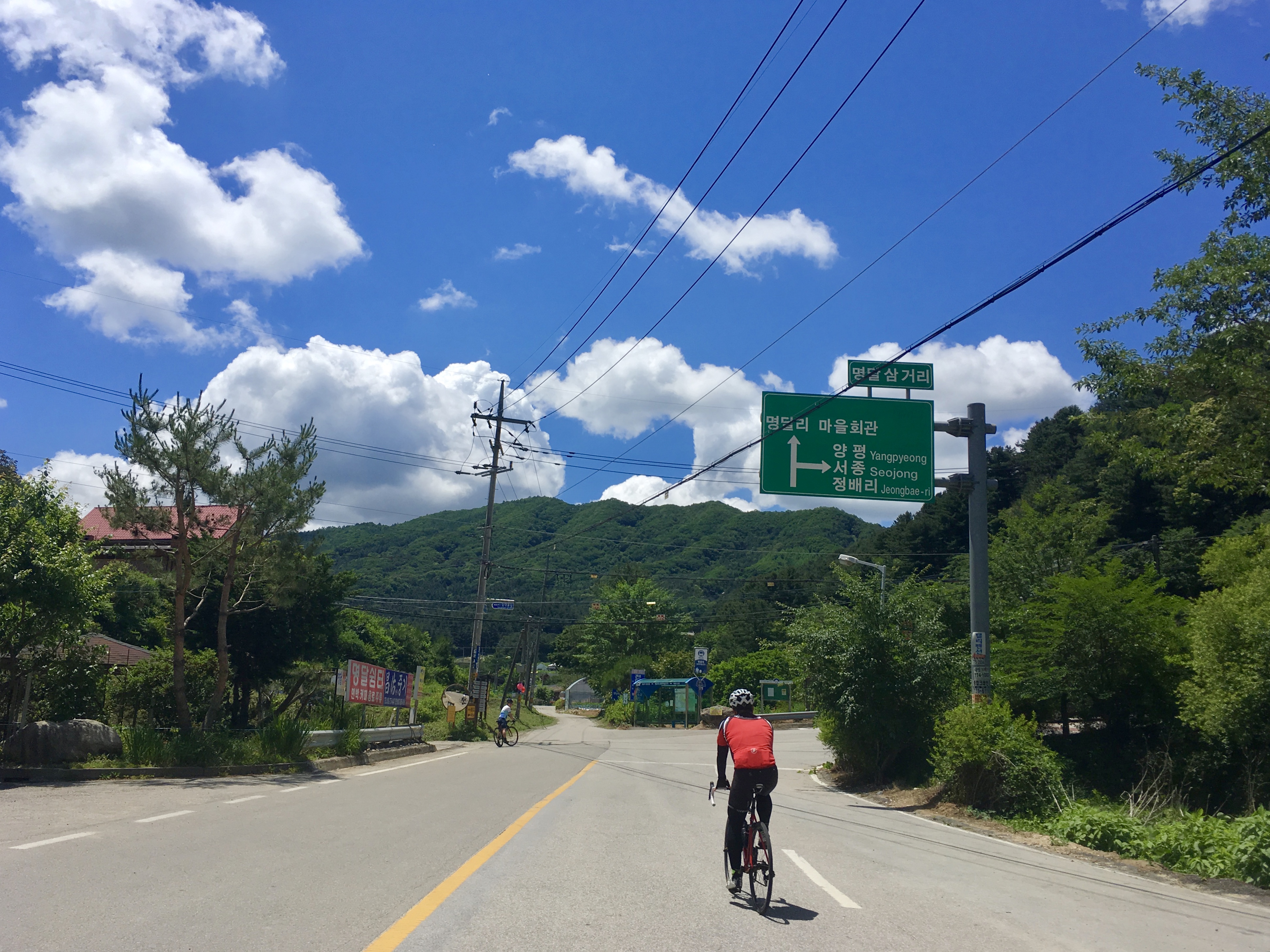 다락재 다운힐을 내려와서 명달리 방향으로 이동합니다.