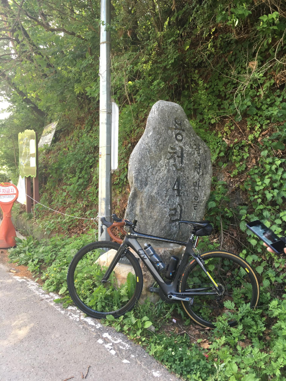 노면이 안좋은 설매재 다운힐길을 조심히 내려와서