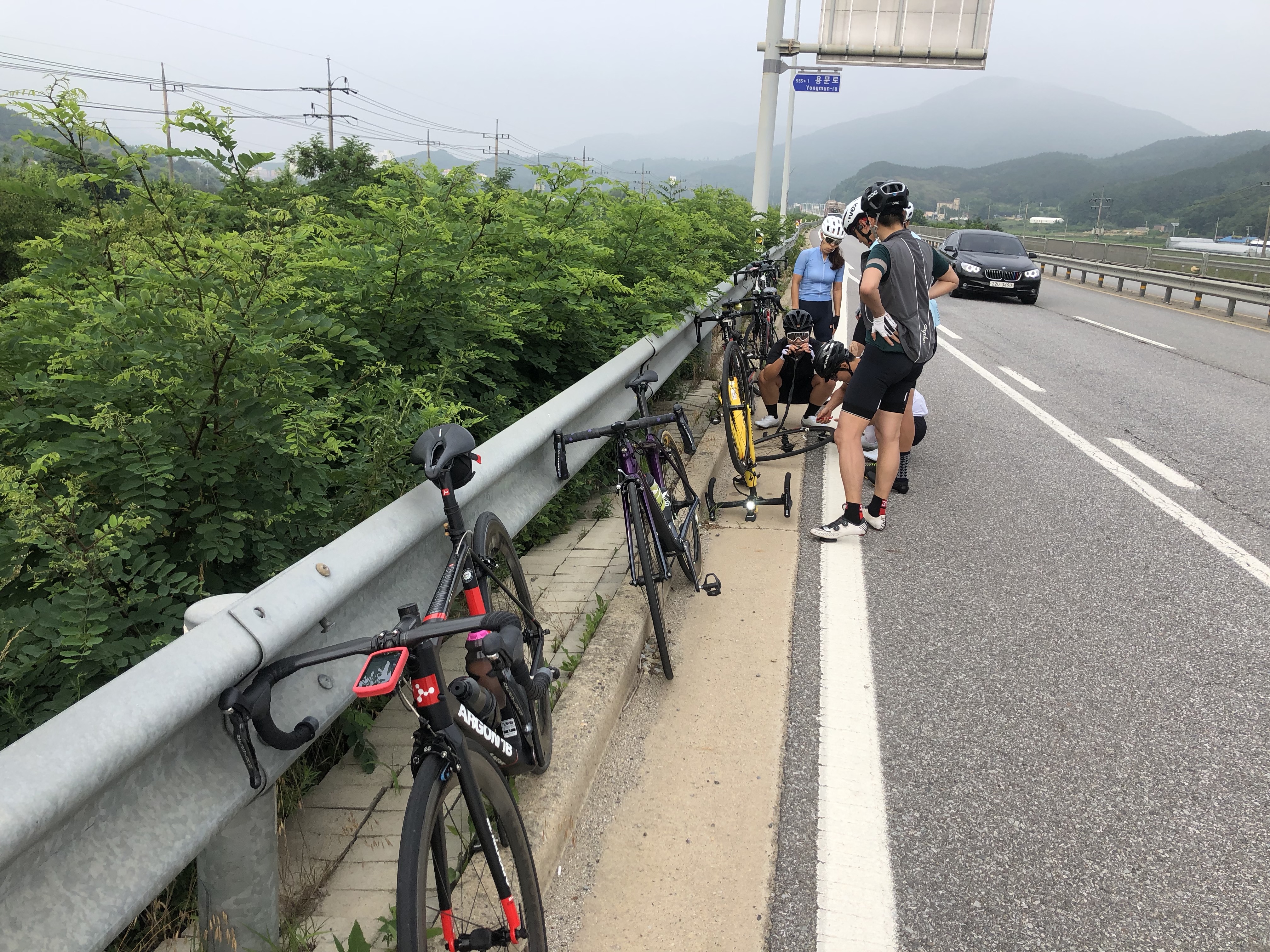 이제 주행거리가 100km에 가까워지니 다들 조금씩 지쳐가기 시작하네요