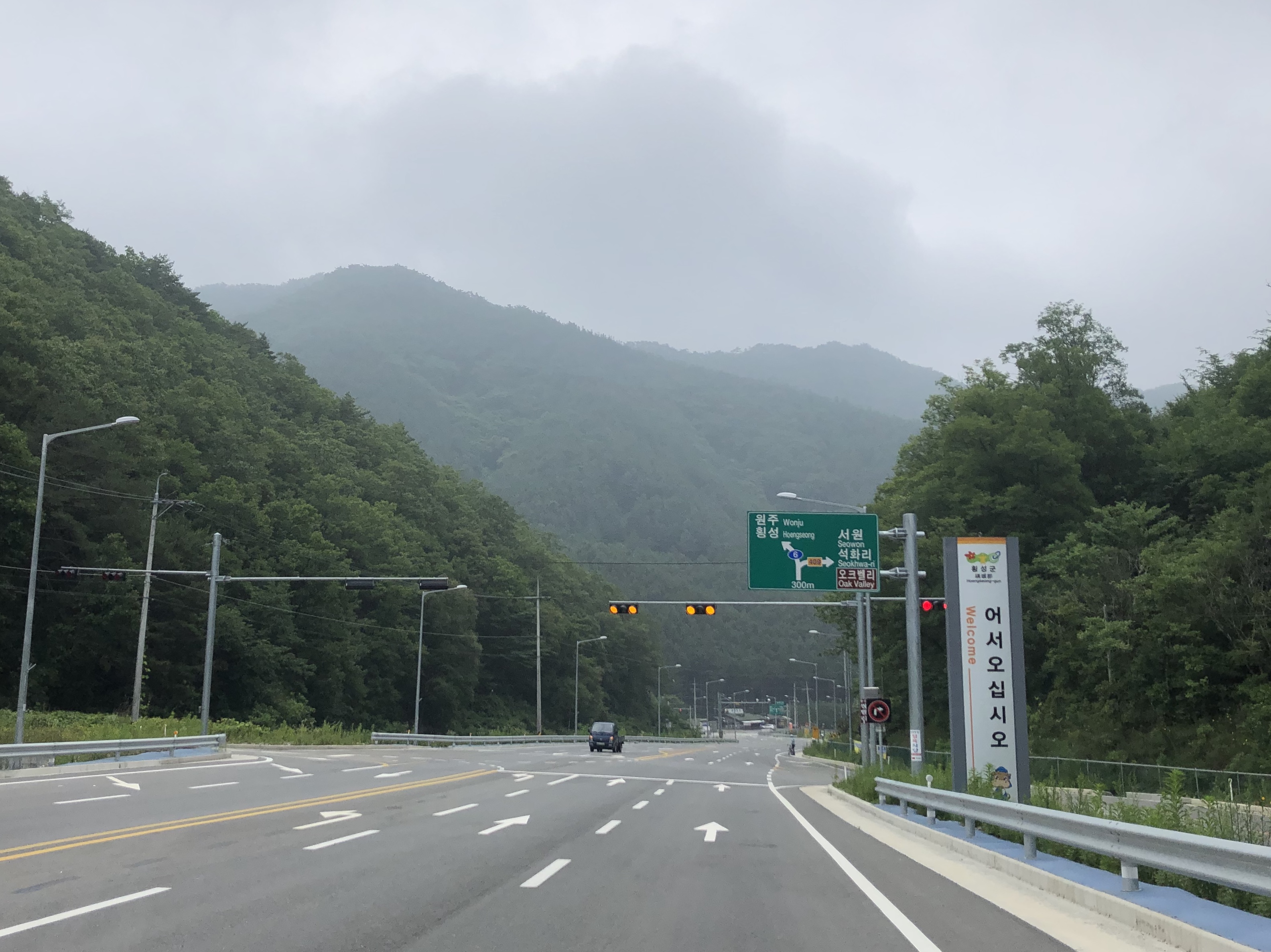 횡성읍 진입전 도로 분기점에서 후미를 붙여서 횡성으로 이동합니다.