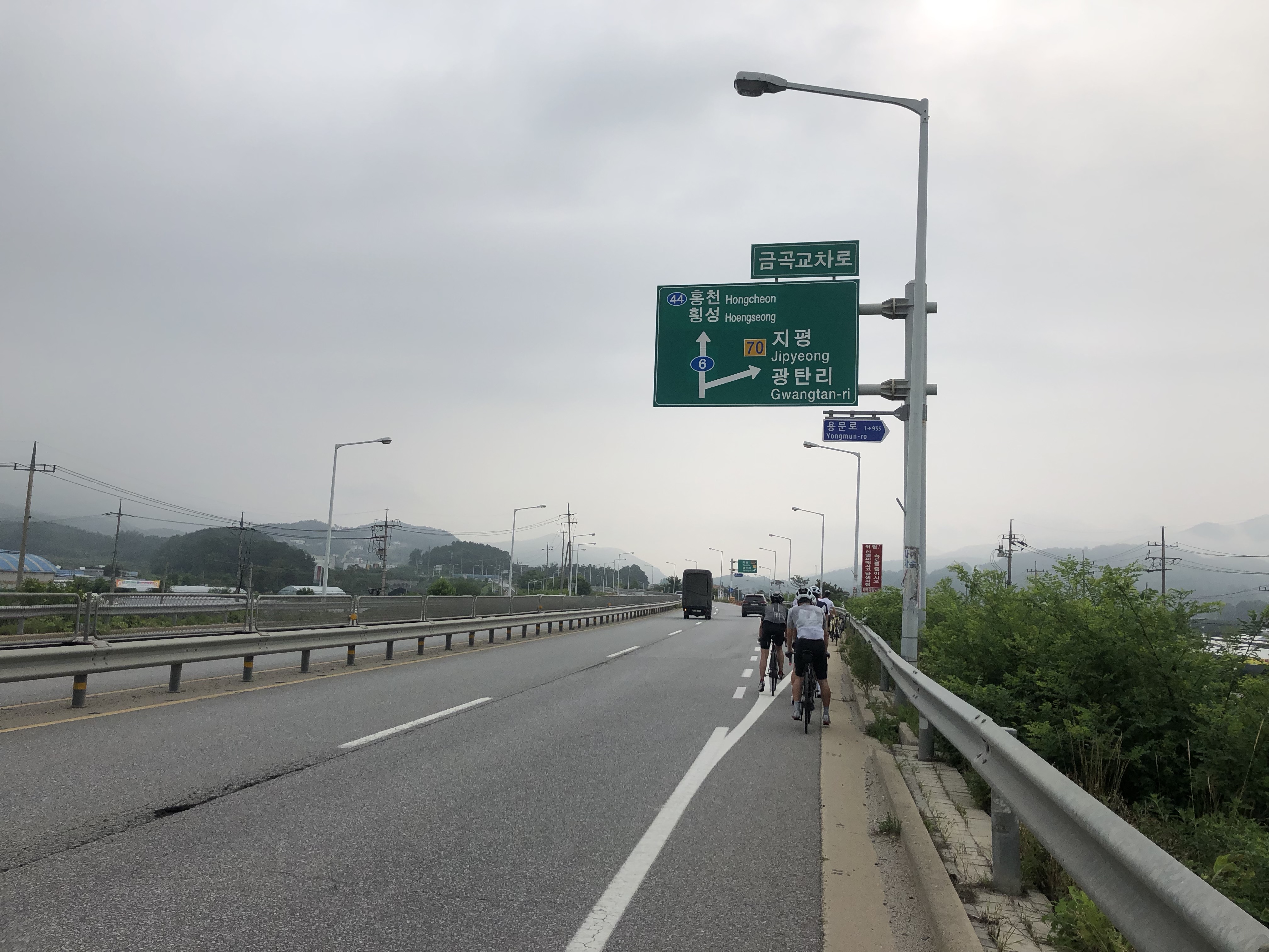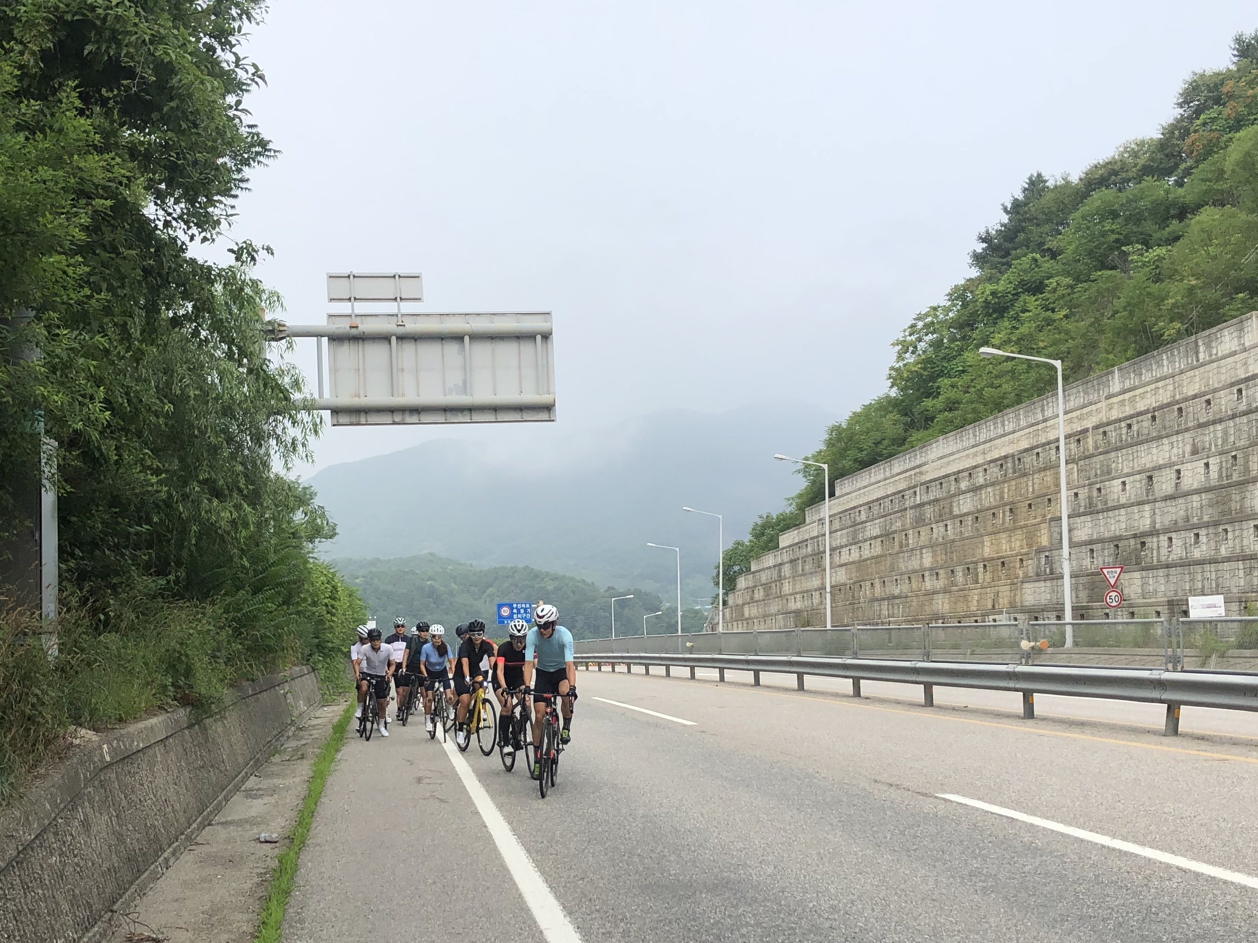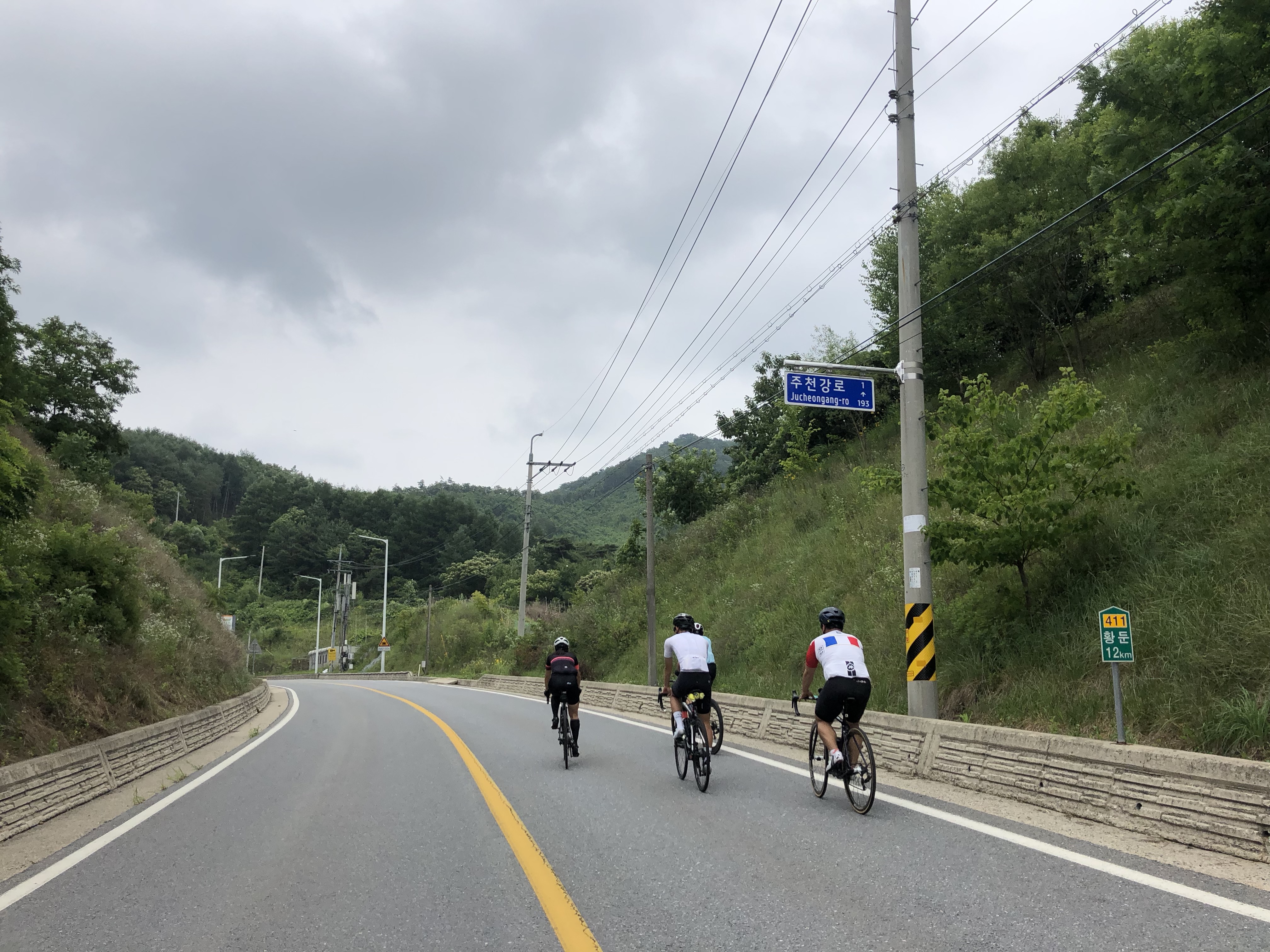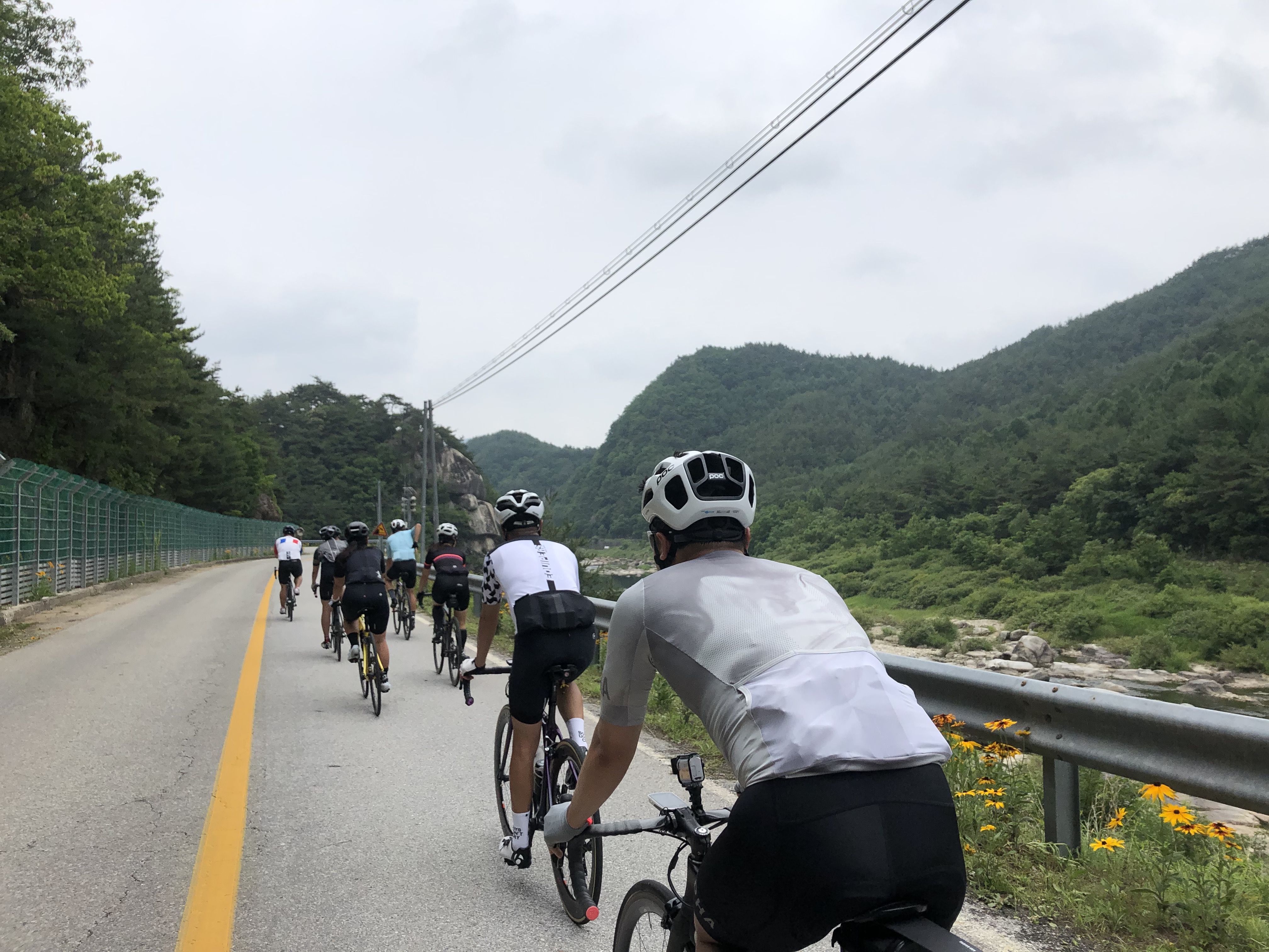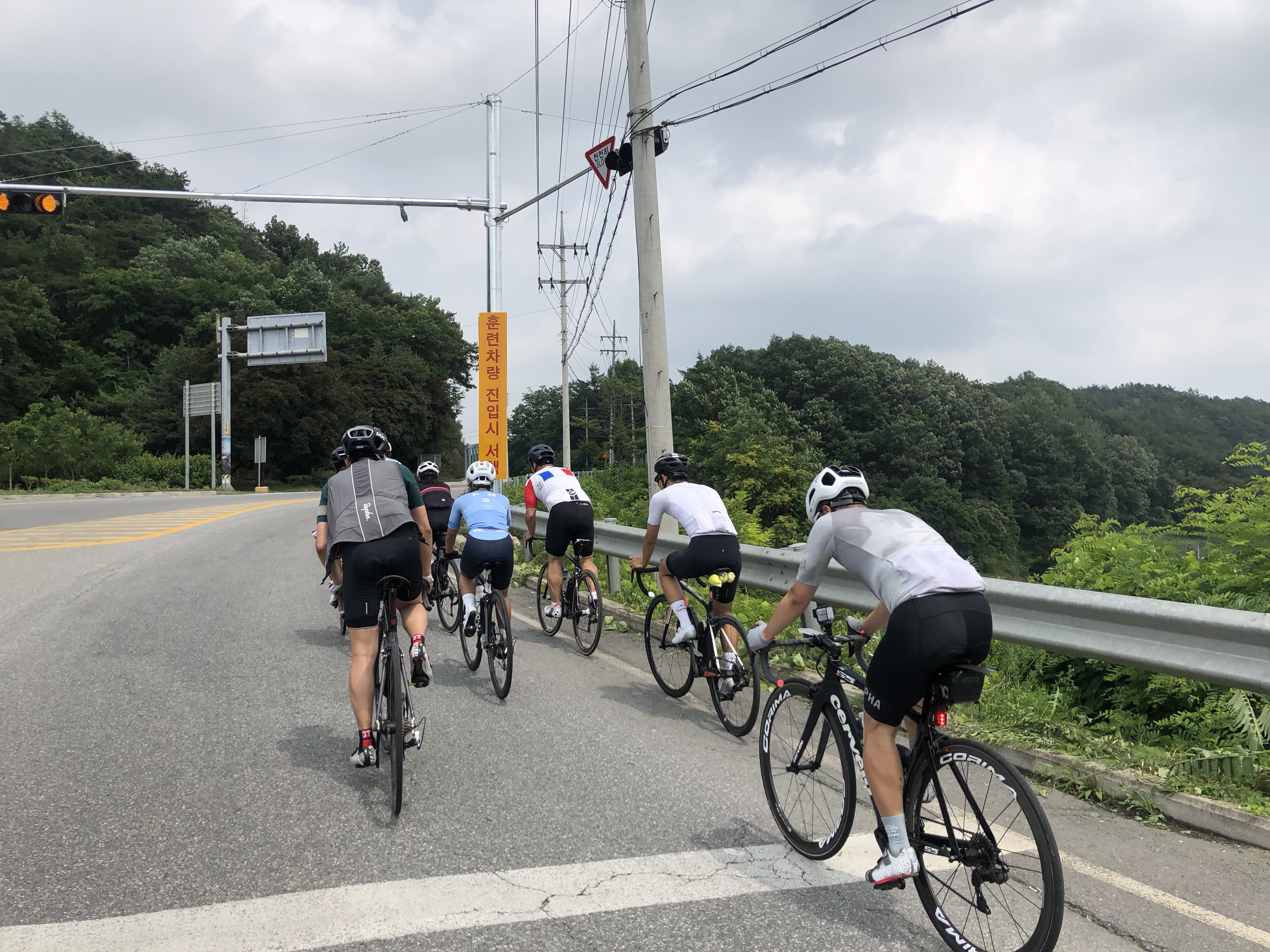 용문 출발해서 15km 정도 다함께 팩주행해서 이동했어요.