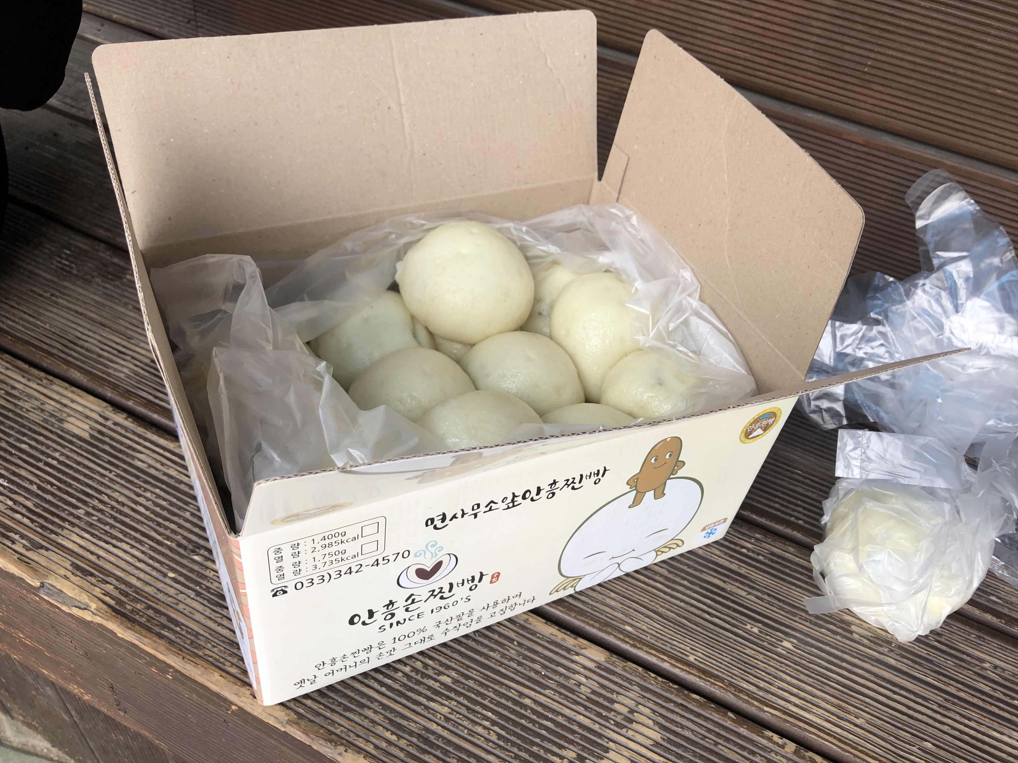면사무소앞 안흥찐빵에서 찐빵을 한세트 25개 구입했어요ㅋ