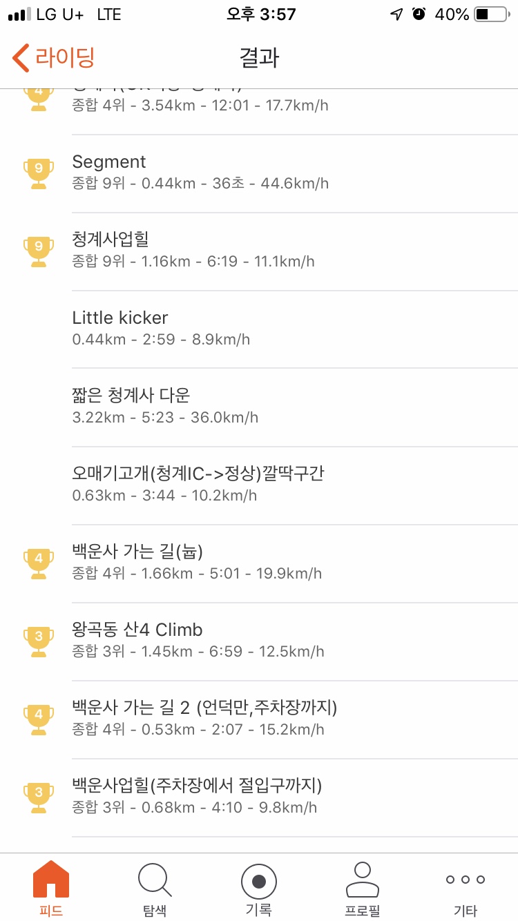 스트라바 구간 기록에 트로피가 11개나 되네요 ㅋㅋ