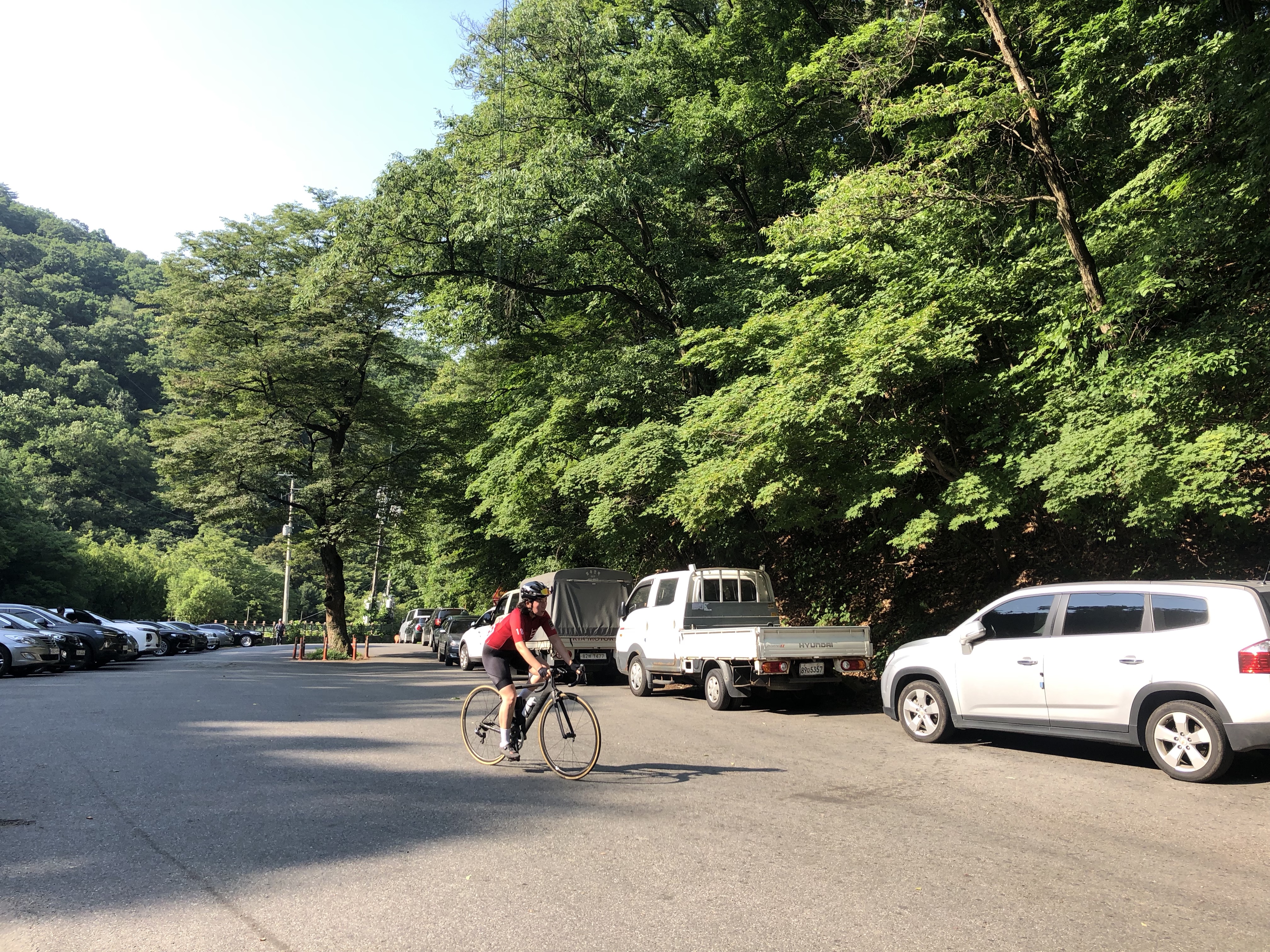 백운사 본격업힐은 이곳 주차장에서 절입구까지
