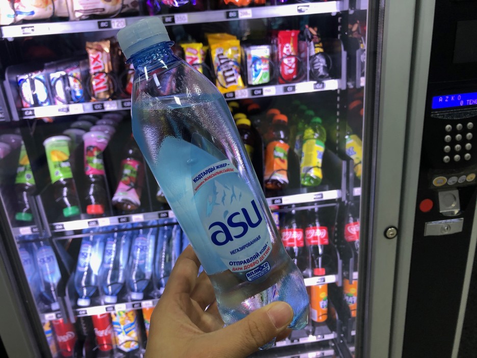 공항 밴딩머신에서 150텡게에 구입한 생수