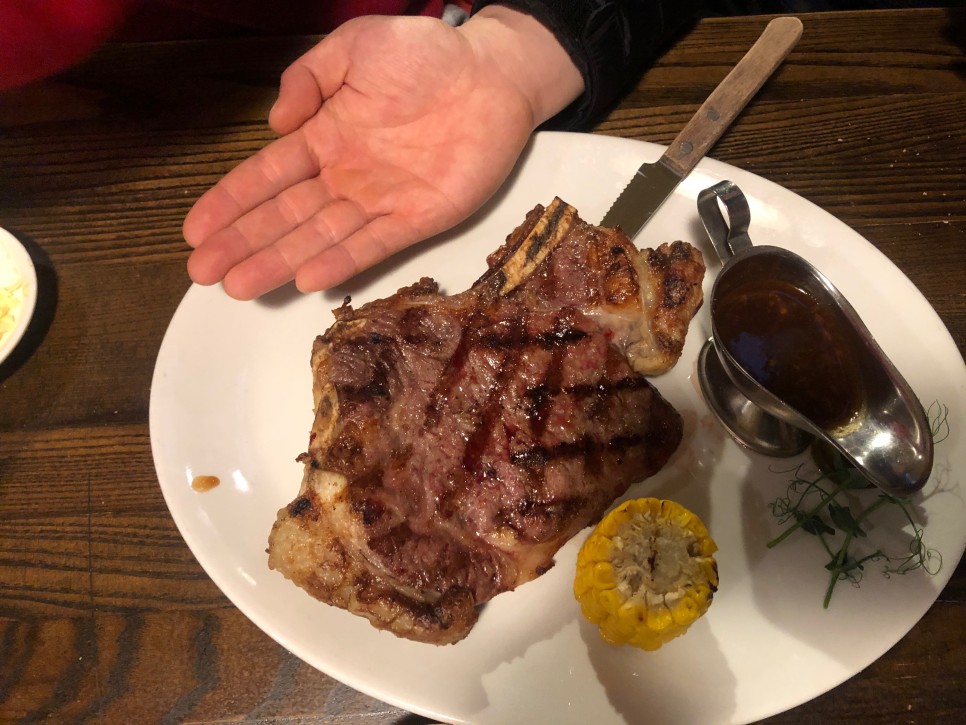 재성이가 주문한 손바닥보다 더큰 티본 스테이크