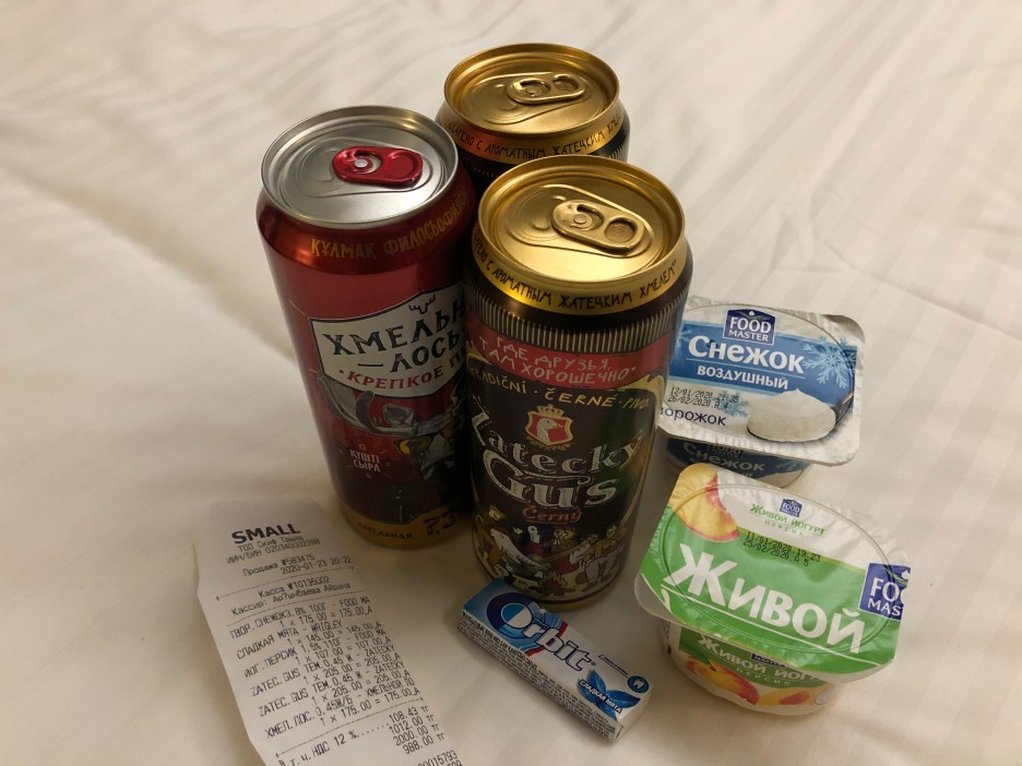 맥주3캔에 요거트 2개 껌 하나 구입했는데..