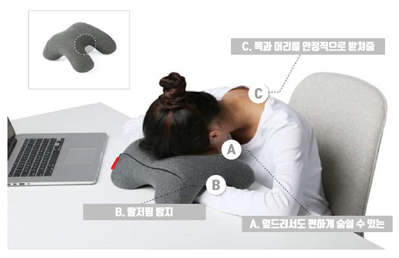 앙마 베게 엎드려 앉아서자기 학생 직장인 사무실 책상 캠핑 낮잠 꿀잠 팔베게 기절 쿠션 : 뽐와