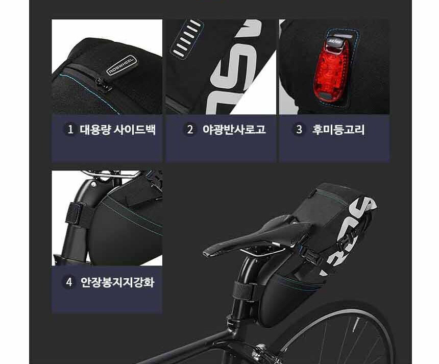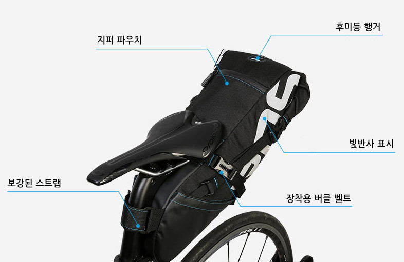 국토종주 라이딩 자출 로드 자전거 안장가방 방수 여행 가방 대용량 10L 새들백 로스휠 : 뽐와샵