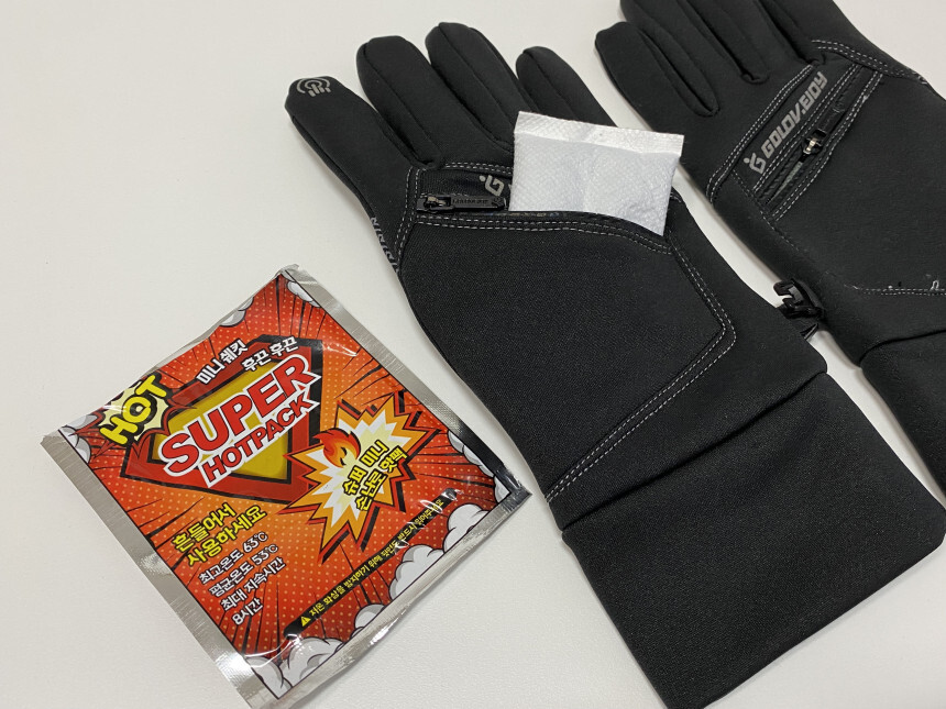 그러다가 찾은 장갑이 손등에 핫팩을 넣어서