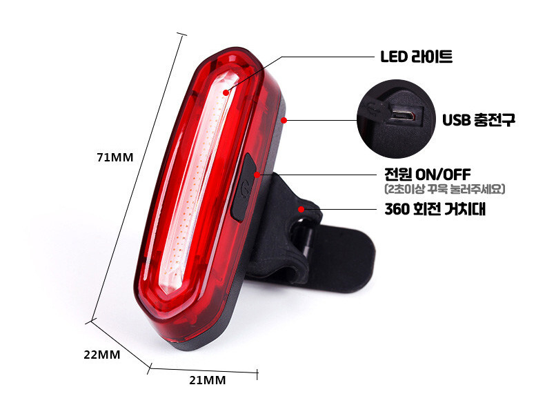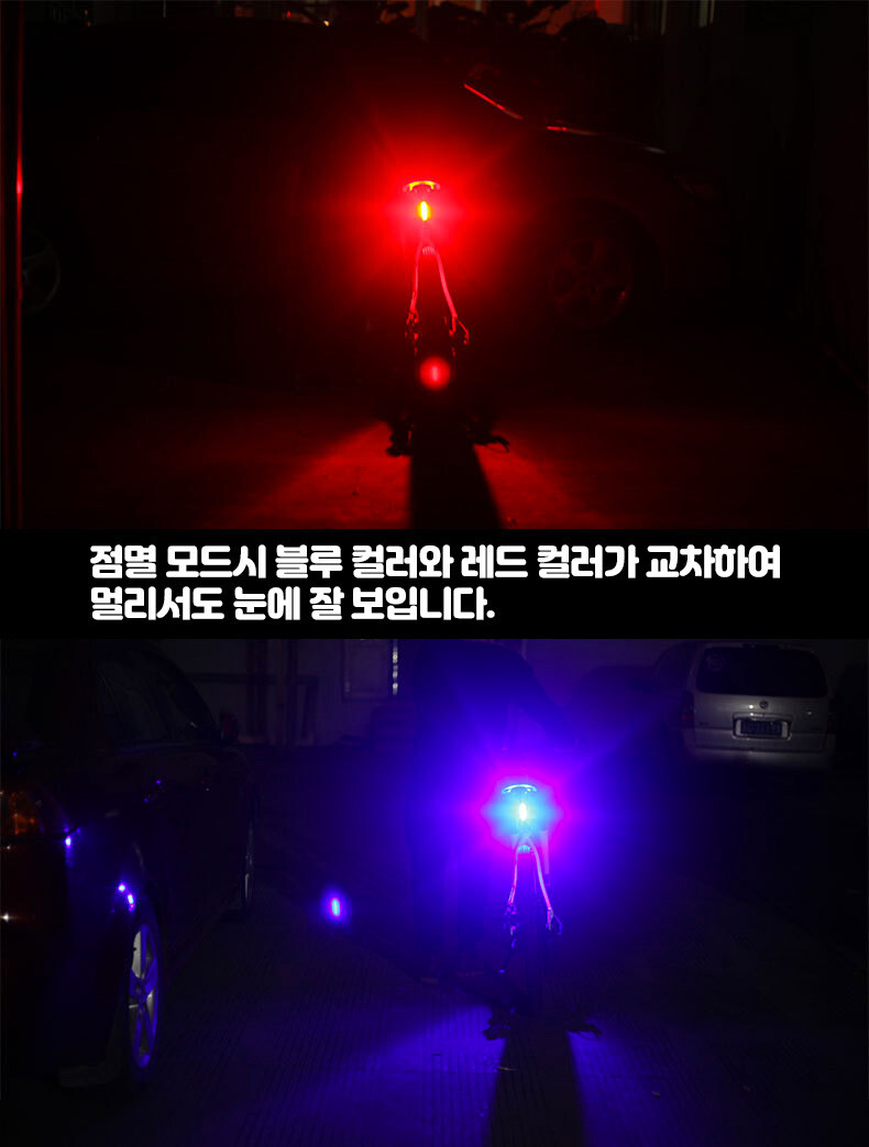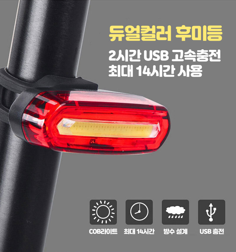 베스퍼 듀얼 칼라 후미등 충전식 자전거 LED 라이트 2컬러 야간 장거리 라이딩 : 뽐와샵