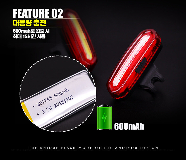 2시간 고속충전으로 최대 14시간 사용 가능한 후미등