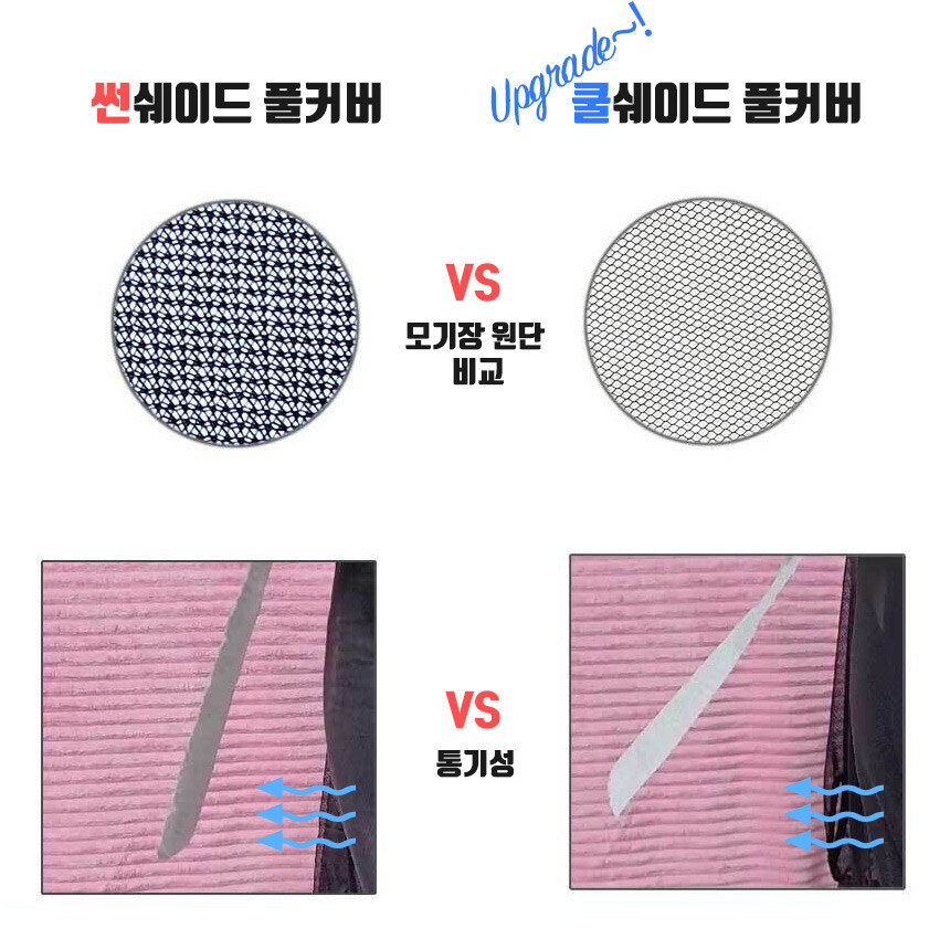 썬쉐이드는 원단이 좀더 촘촘해서 햇빛 가리기가 더 좋고