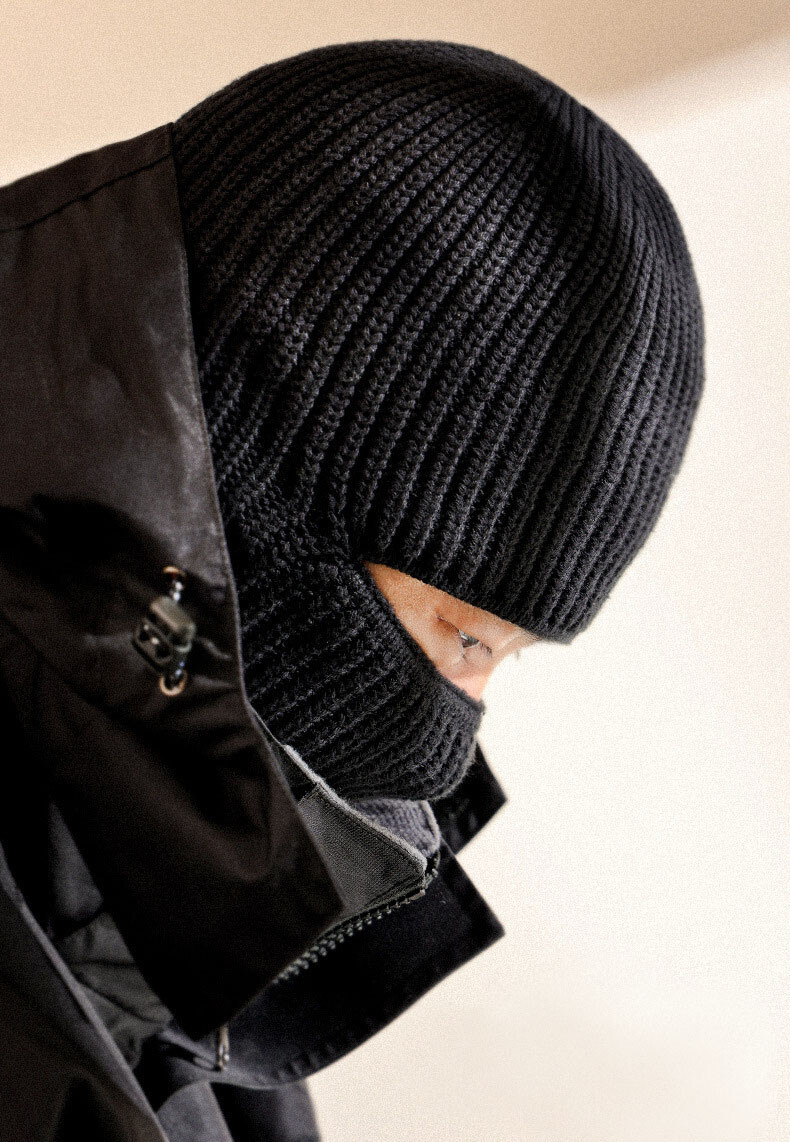 레티스 마스크 복면 겸용 겨울 방한 비니 라이더 워머 니트모자 블랙 : 뽐와샵