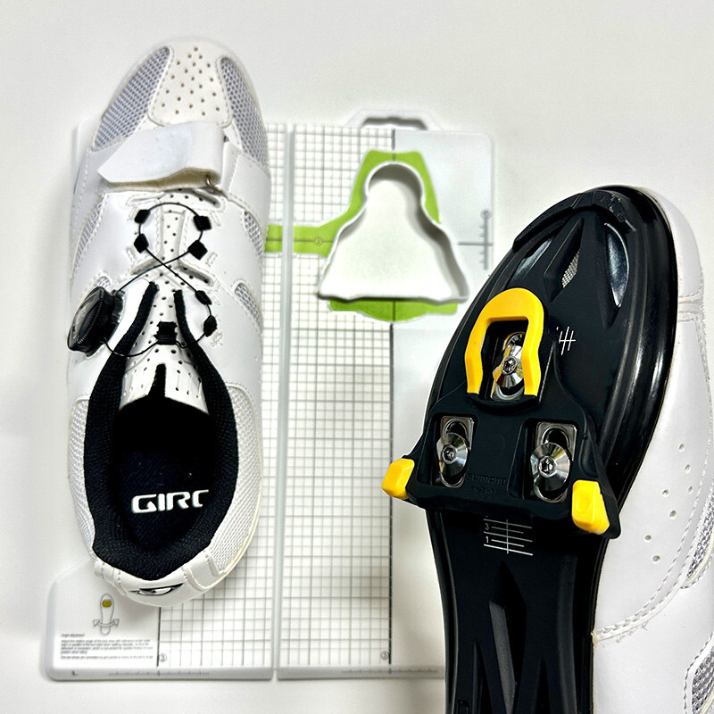클릿 피팅 툴을 바닥에 놓고 클릿 슈즈를