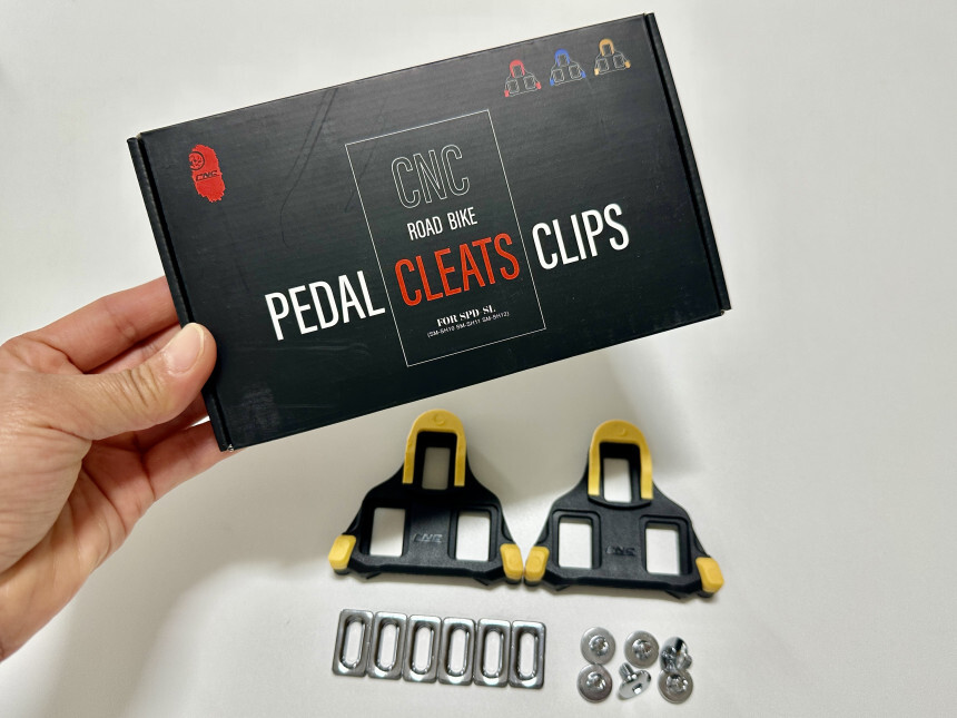 페달 클릿 1쌍(2개), 와셔 6개, 나사 6개로 구성됩니다.