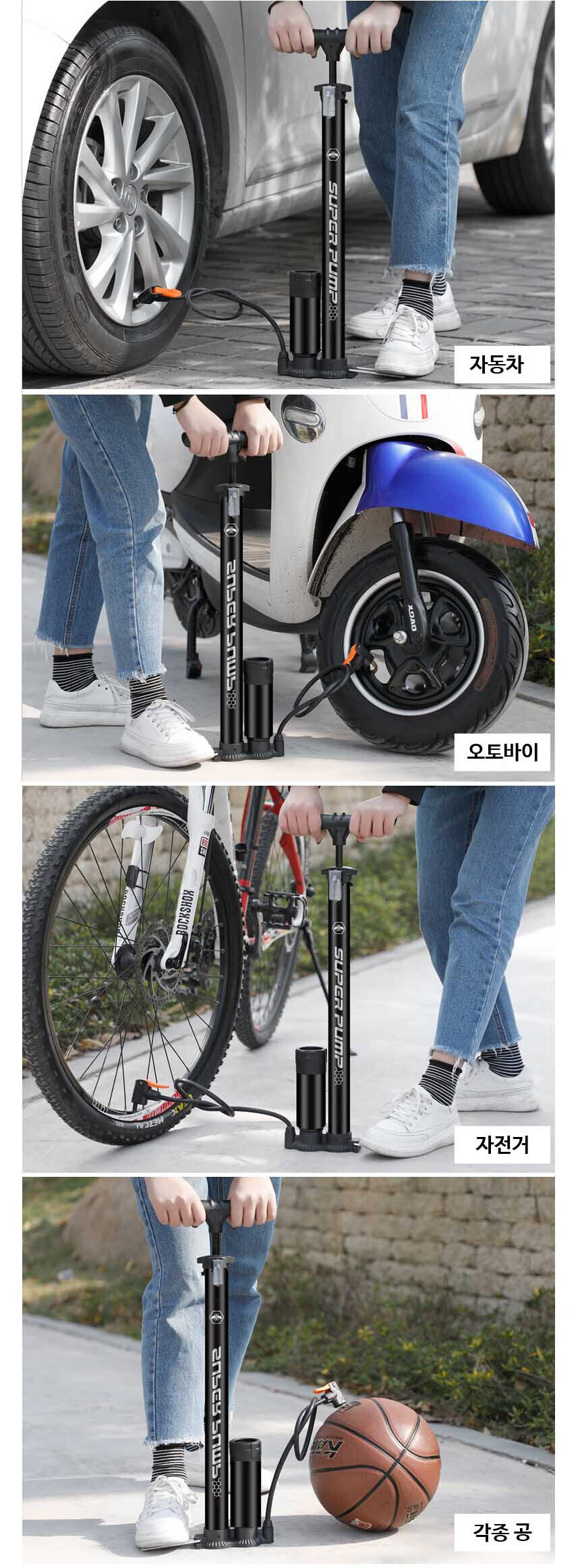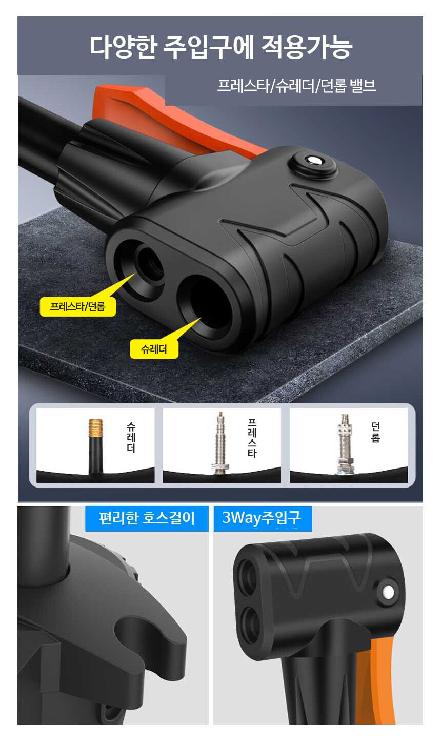 다양한 자전거 튜브 밸브에 공기주입이 가능 합니다