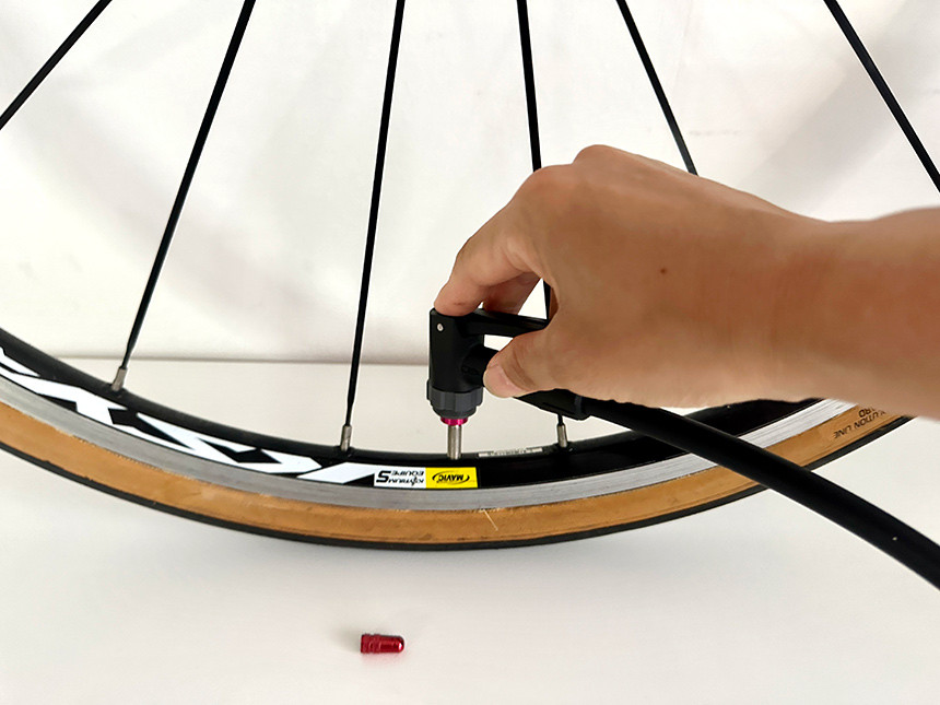 밸브 타입에 맞는 주입구를 맞추어 밸브에 깊숙히 꽂아줍니다.
