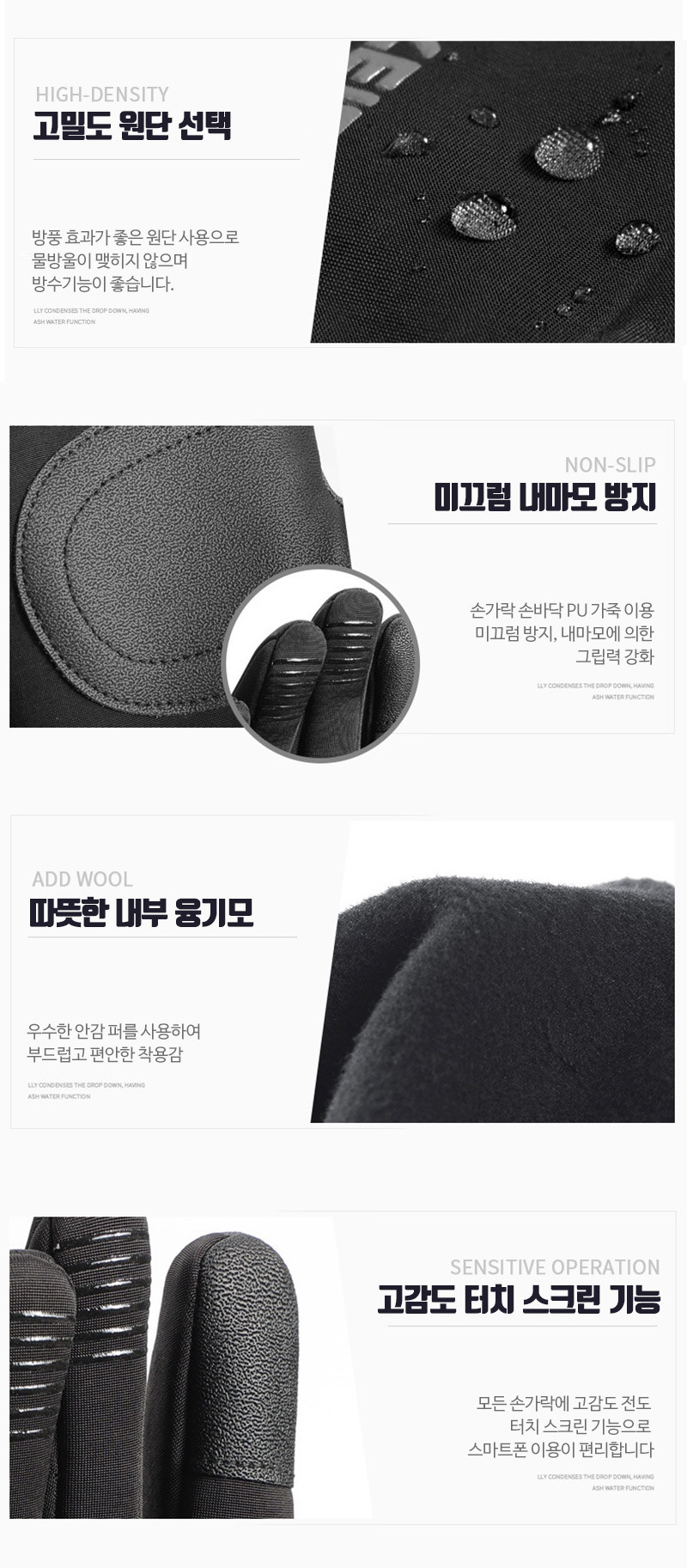 기능: 따뜻한 기모융, 스마트폰 터치 가능,