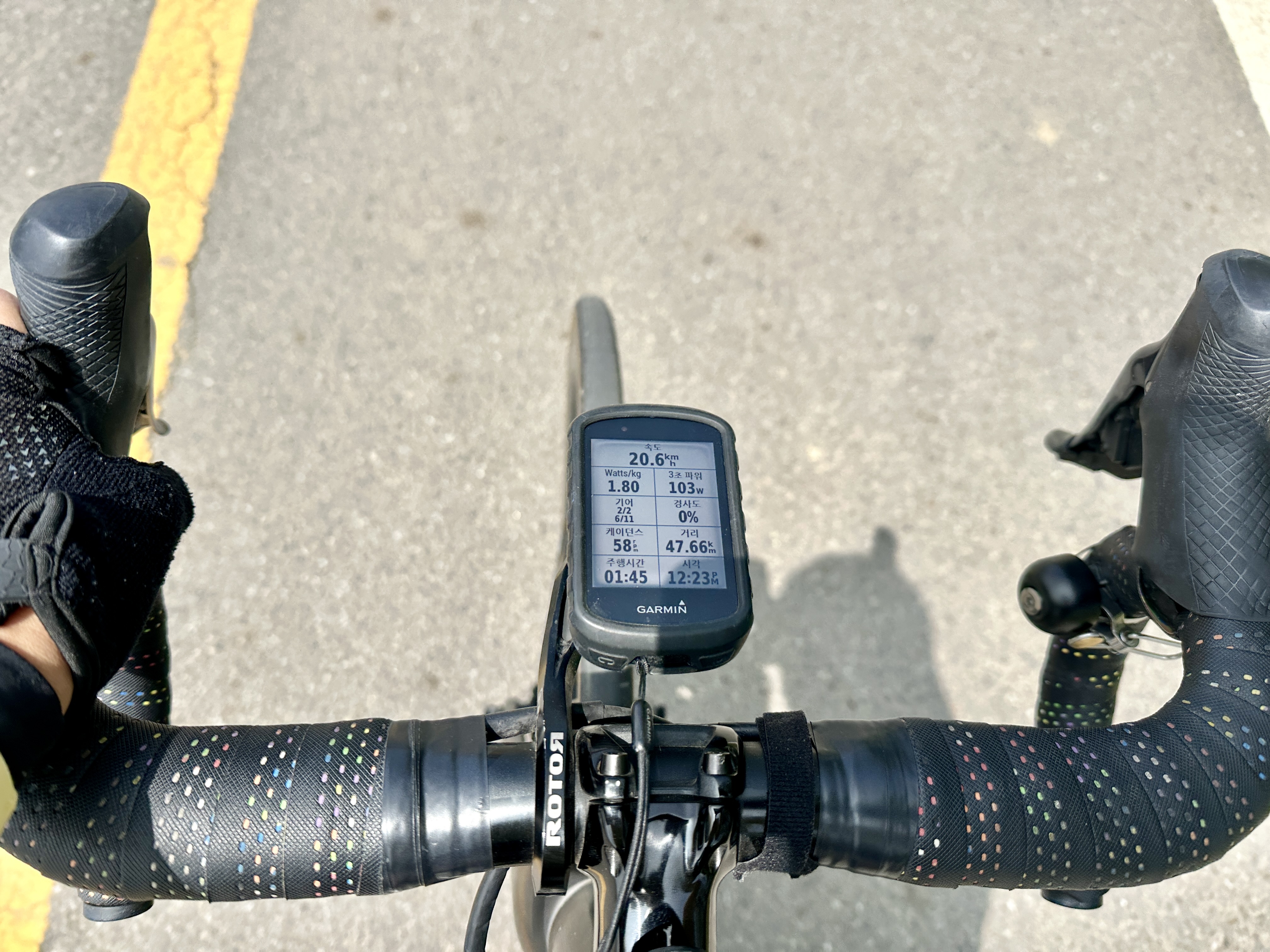 로드 자전거의 핸들바에 간편하게 설치해서