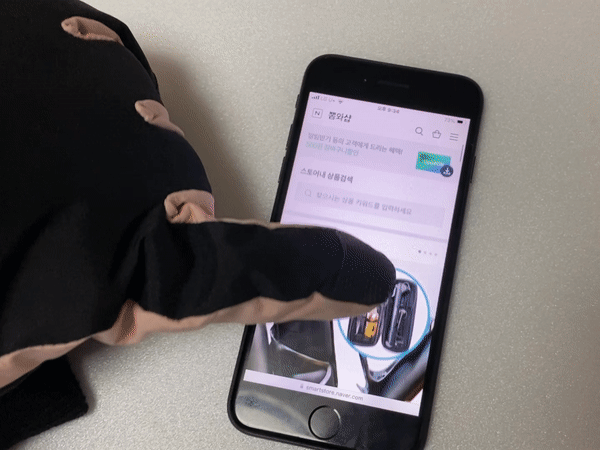 엄지와 검지 부분 손가락 터치 스크린 기능으로 스마트폰