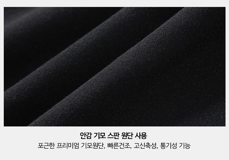 포근한 프리미엄 기모원단, 빠른건조, 고신축성, 통기성 기능