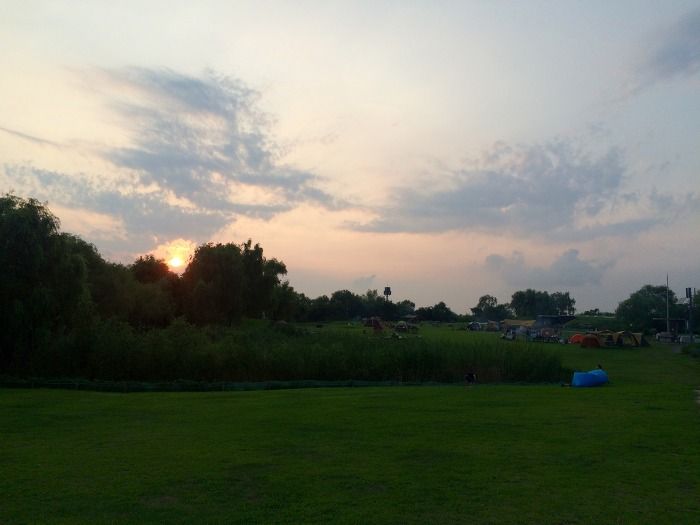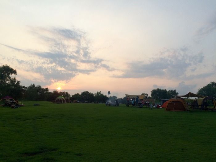 넓고 푸릇한 초록색 잔디밭과 캠핑족들을 보니