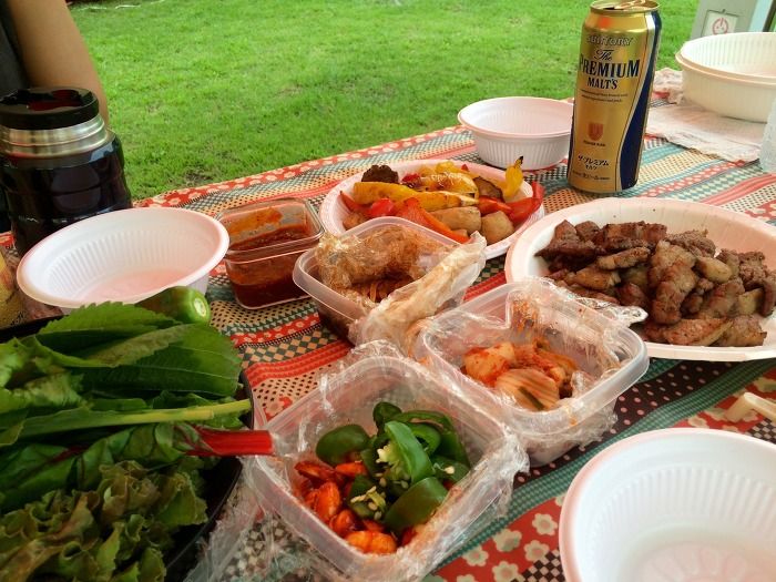 약속 시간에 늦어서 타프치는거랑 고기 굽는것도 못 도와주고..