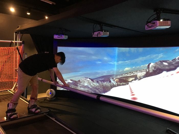 VR 스크린으로 실내에서 스노보드/스키를 탈수있는