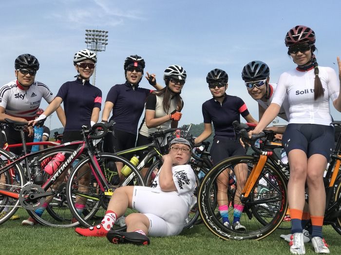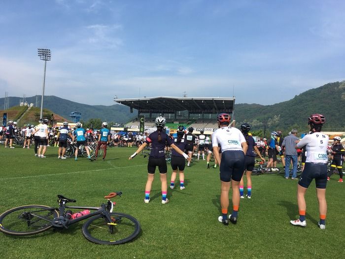 대회장 주차장에 버스를 내리고 환복을 하고 라이딩 준비도 마치고