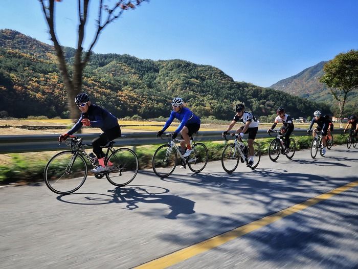 자전거타랴 사진찍으랴 팩에서 떨어지면 규봉이가 나타나서 끌어주고..