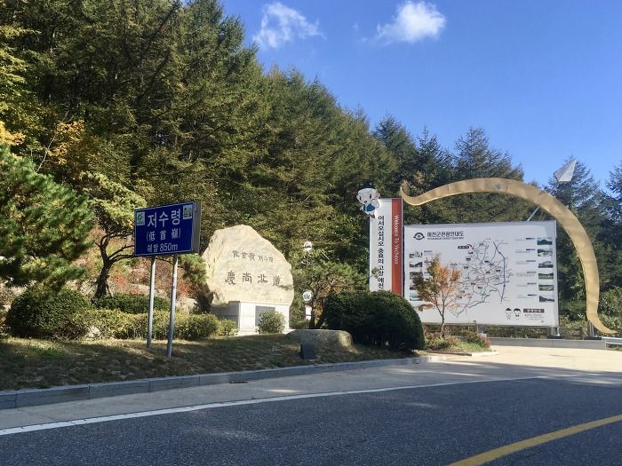 저수령에 도착했어요~ 여기 구간 측정이 좀 애매해서 저기 앞까지 지나가야 한답니다.